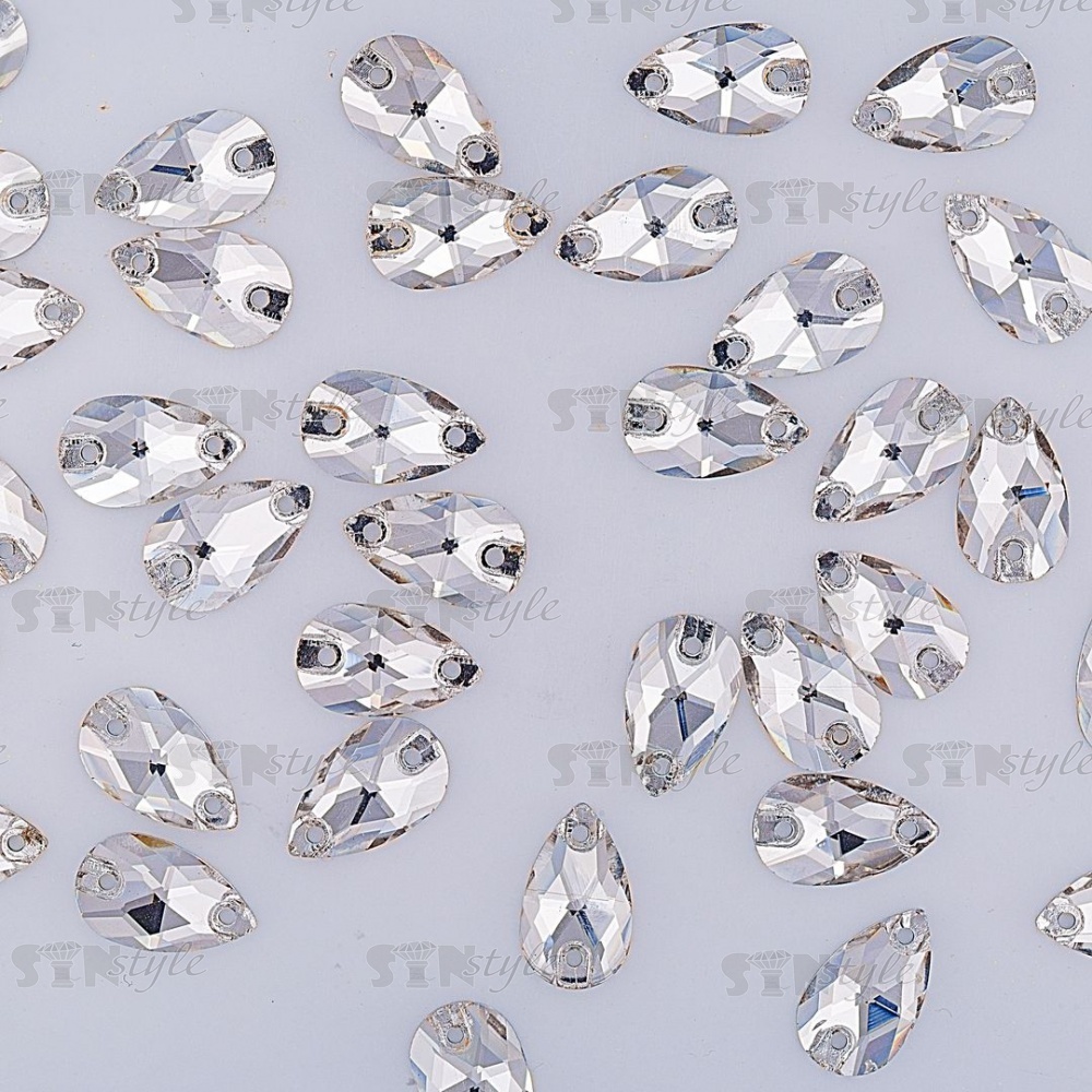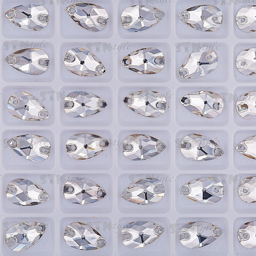Стразы пришивные стеклянные, форма капля, цвет белый прозрачный, размер 7*12 мм