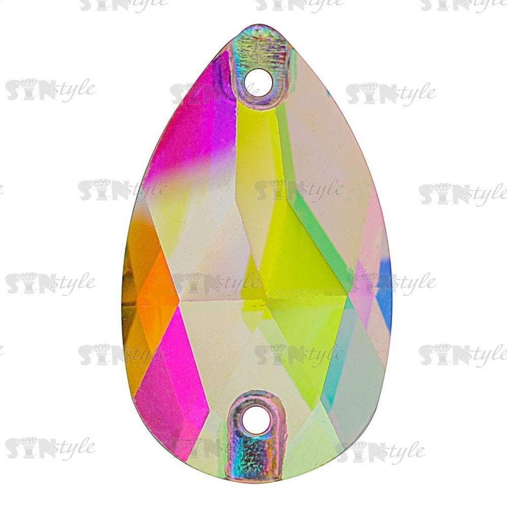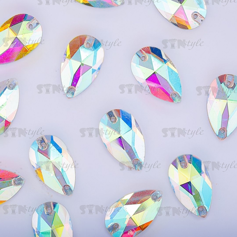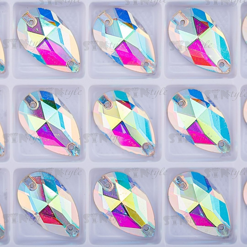 Стразы пришивные стеклянные Капля, цвет радужный (голография), размер 13 мм х 22 мм
