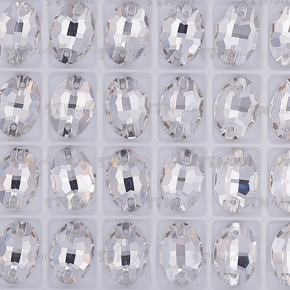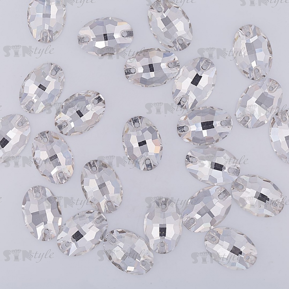 Стразы пришивные стеклянные Овал, цвет белый прозрачный, размер 11*17 мм, 144 шт/уп