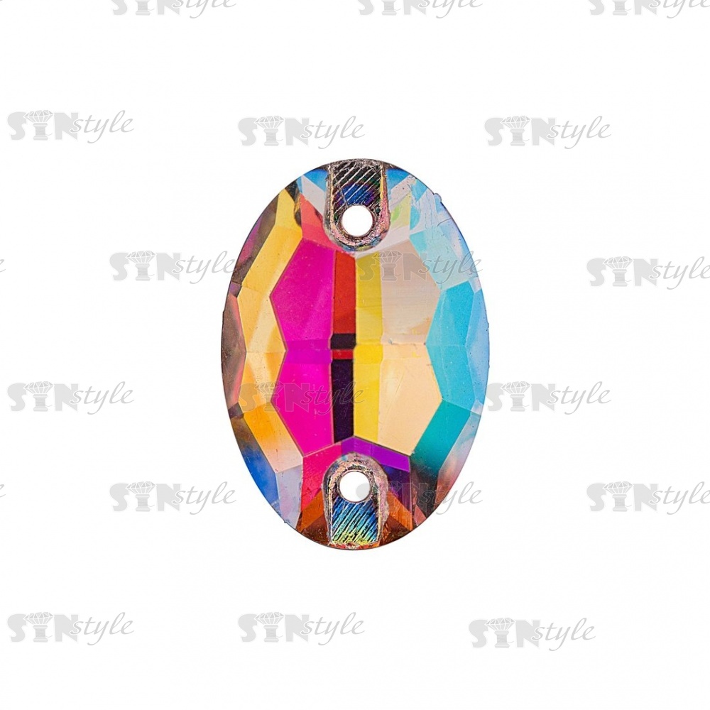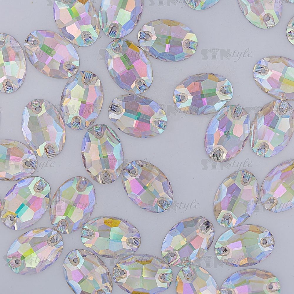 Стразы пришивные стеклянные Овал, цвет радужный (голография), размер 11 мм х 17 мм
