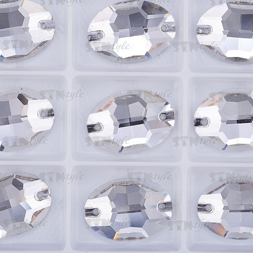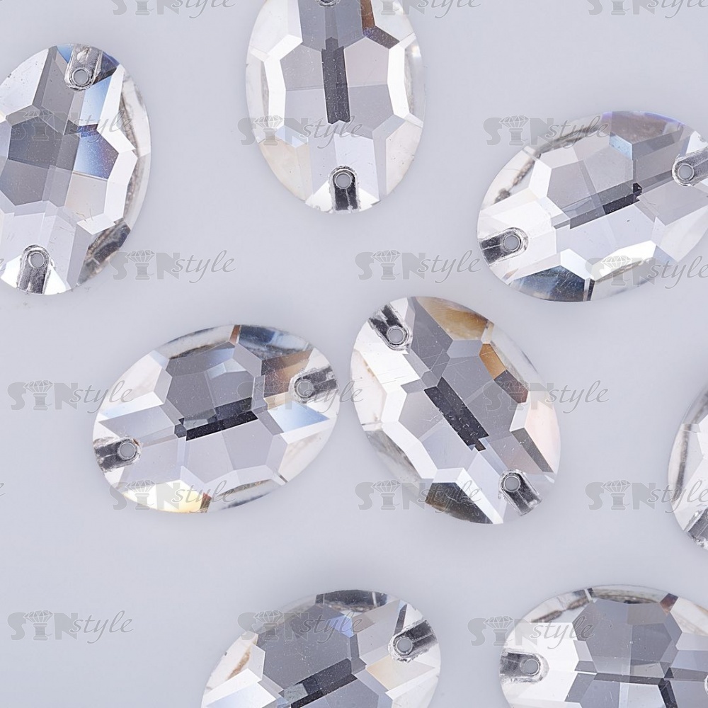 Стразы пришивные стеклянные Овал, цвет белый прозрачный, размер 17*25 мм