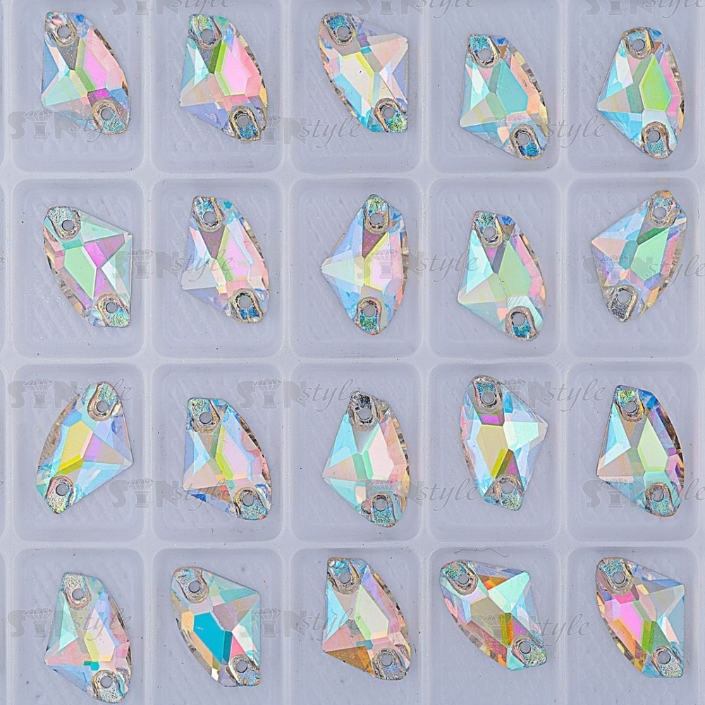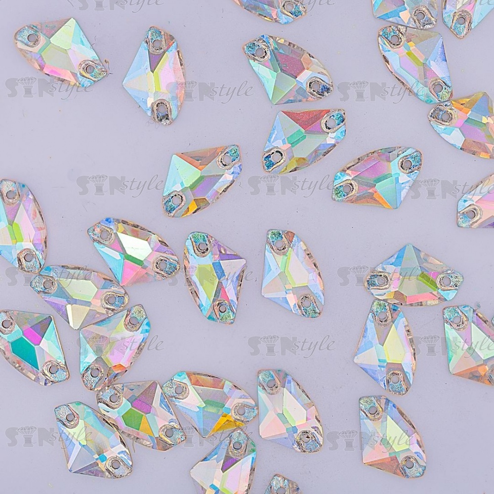 Стразы пришивные стеклянные, форма Галактик, цвет радужный (голография), размер 15 мм х10 мм