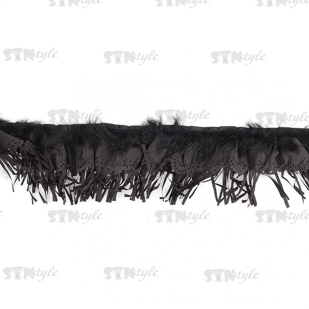 Кружево с отделкой, кружево с плотной бахромой и с элементами из меха по краю изделия по всей длине, ширина 90мм, намотка 5 ярдов, цвет черный