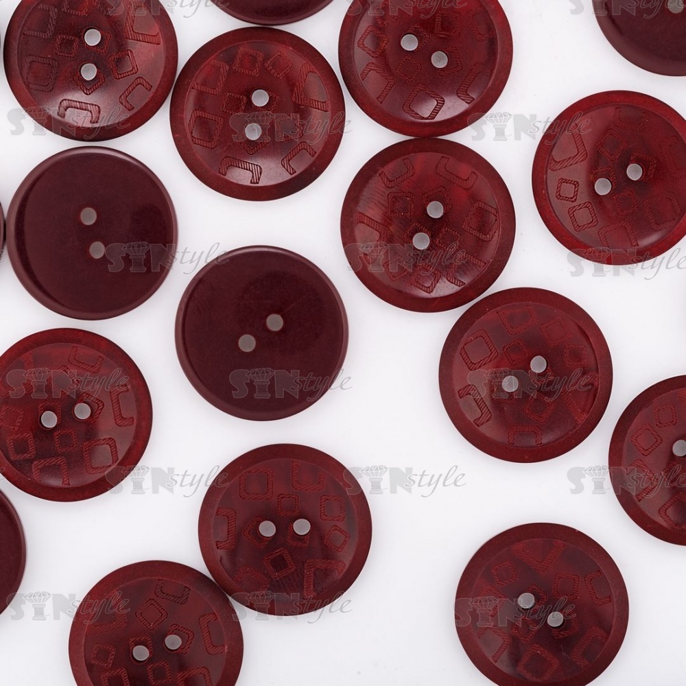 Пуговица пластиковая на два прокола, бордовая, 40L