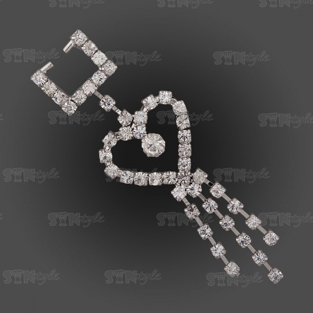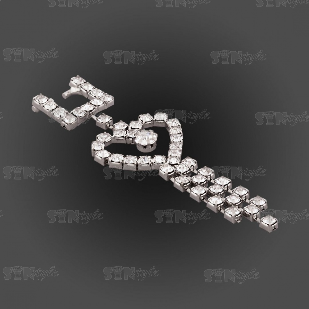 Пряжка металлическая, цвет серебряный+белые стразы, внутренний размер 13 мм