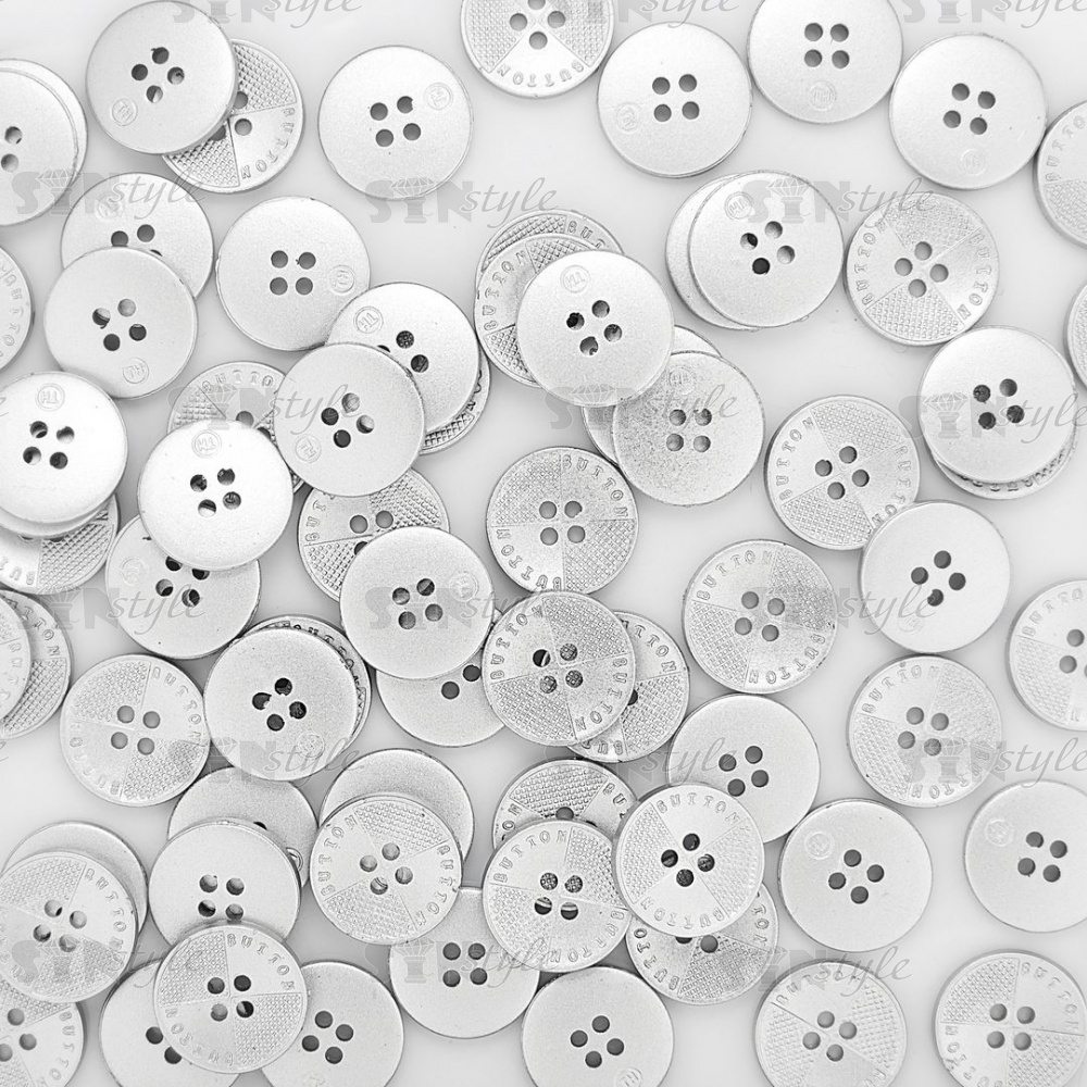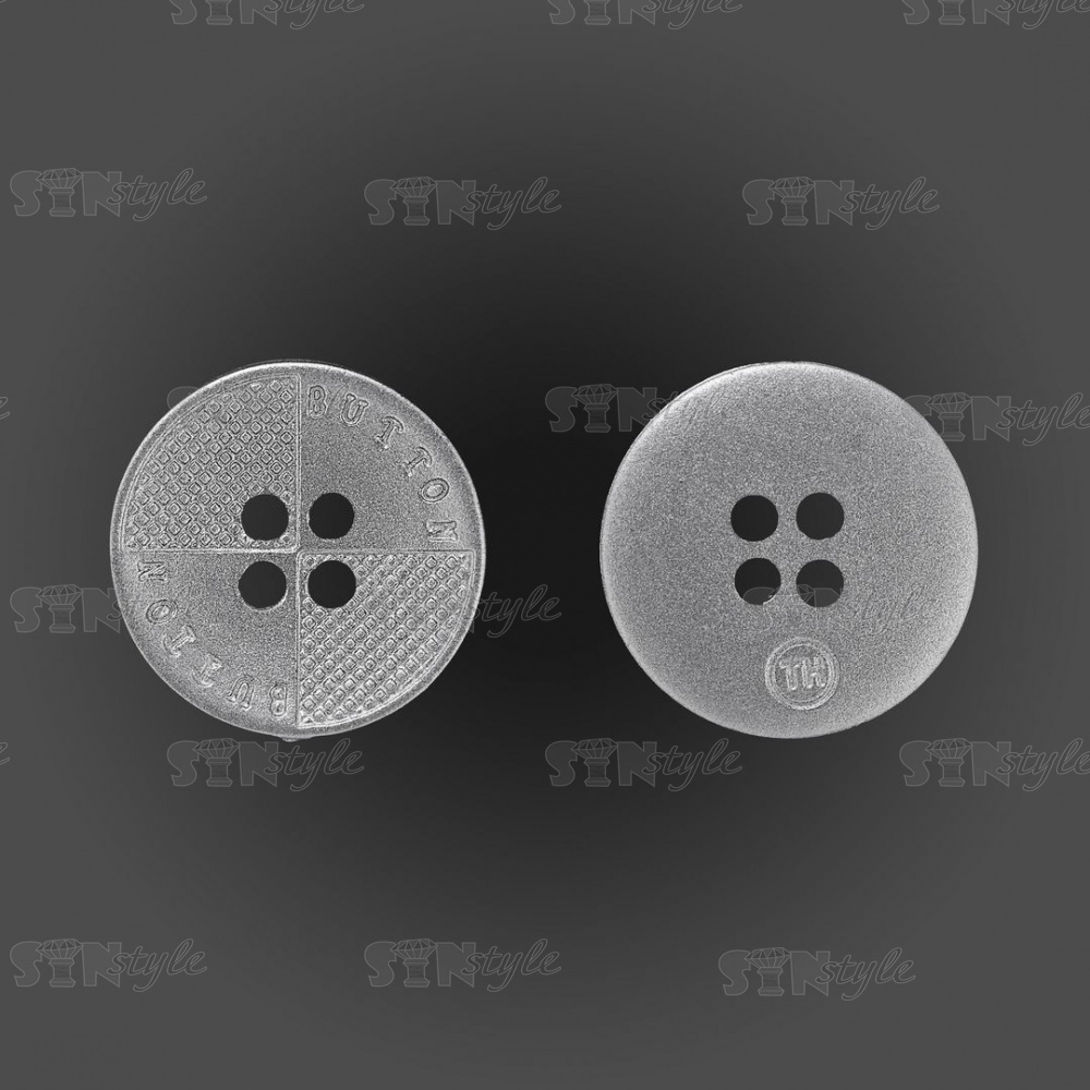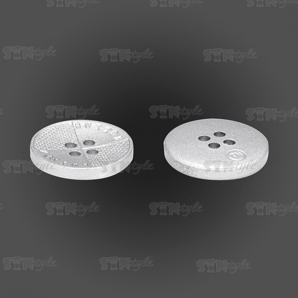 Пуговица пластиковая на четыре прокола, размер 28L, цвет серебристый