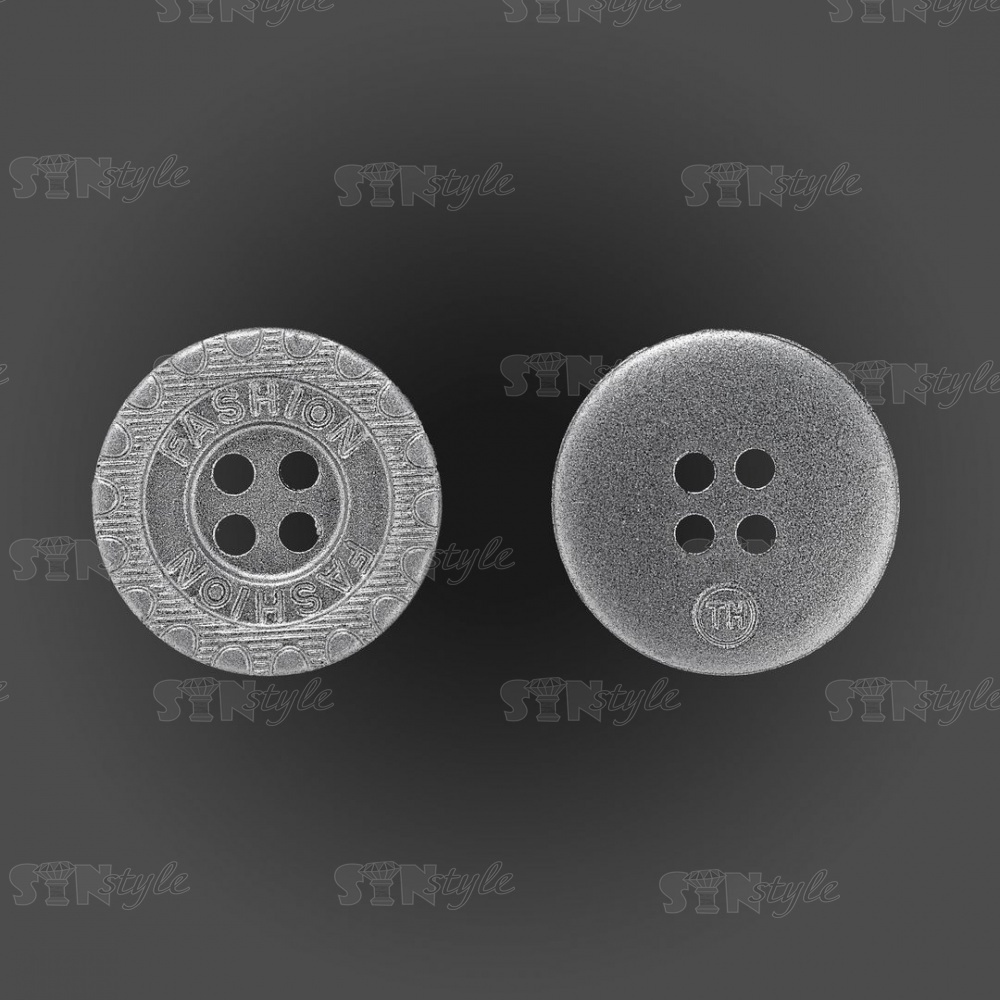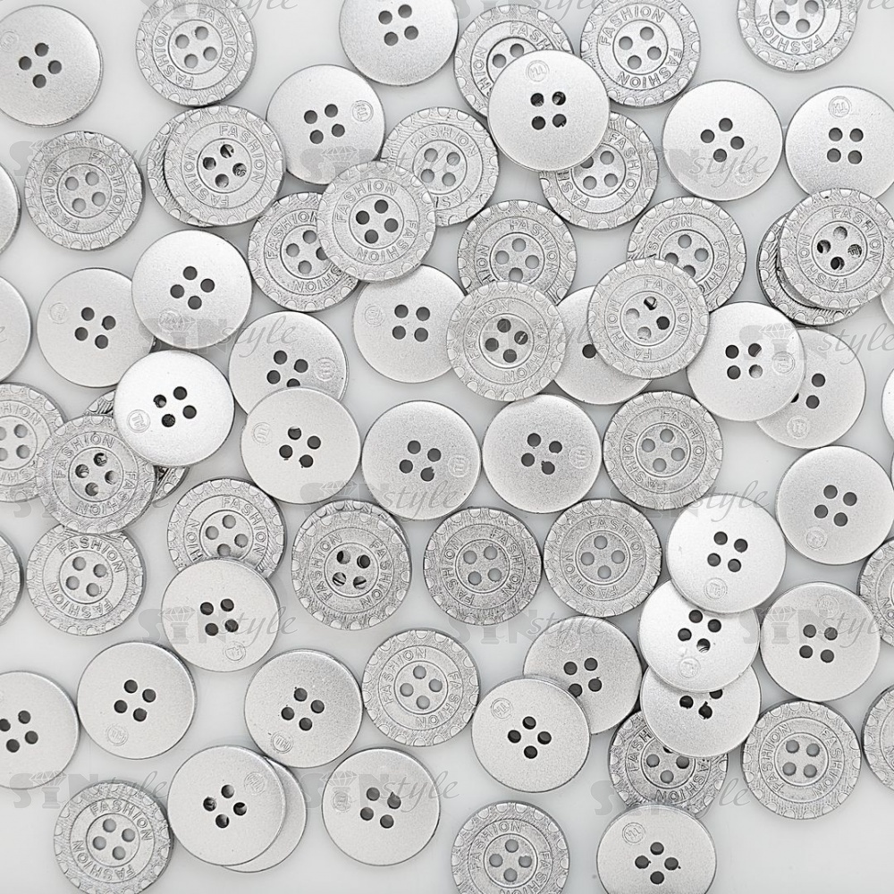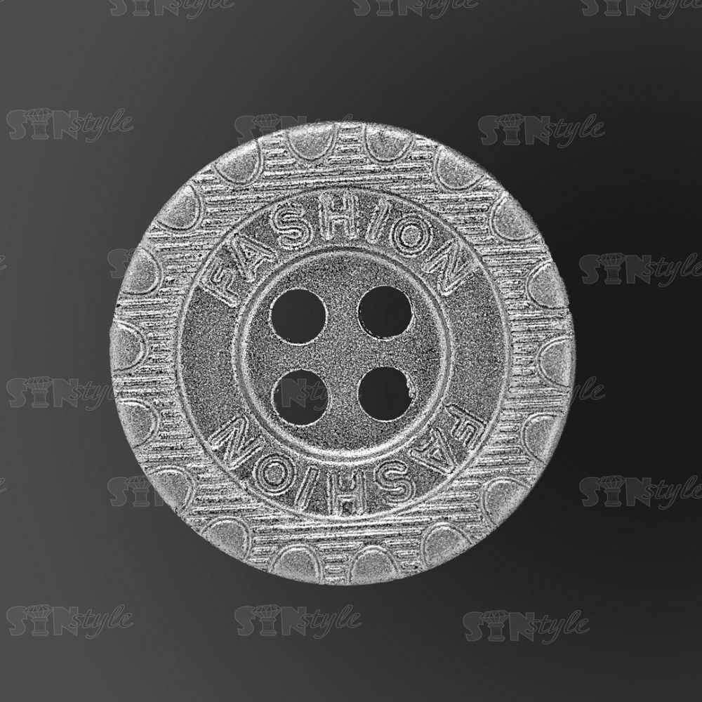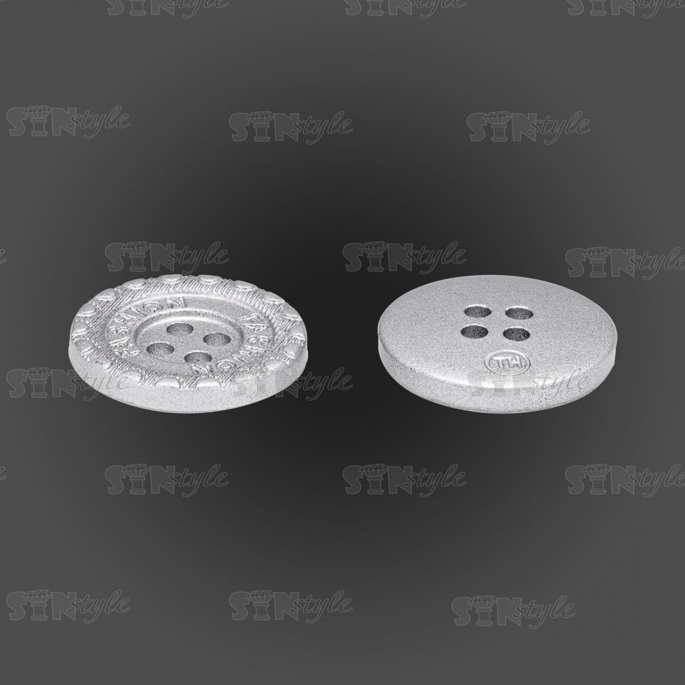 Пуговица пластиковая на четыре прокола, размер 28L, цвет серебристый