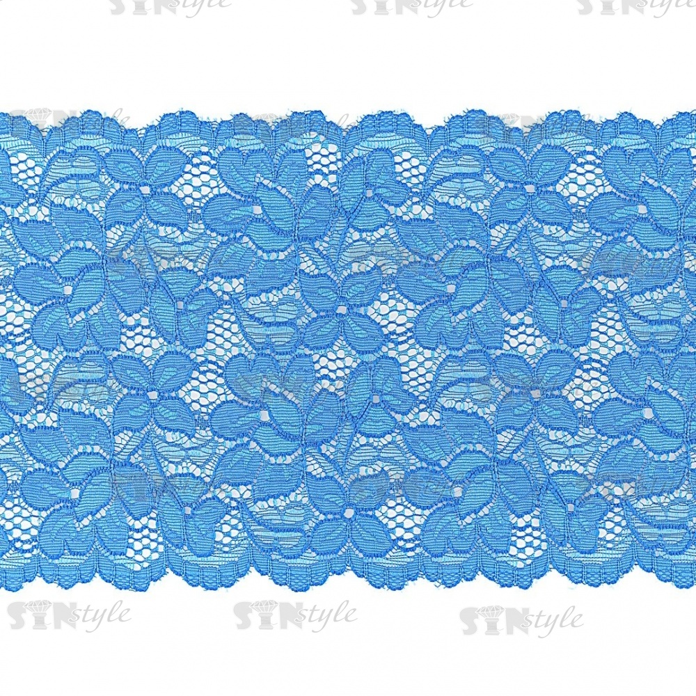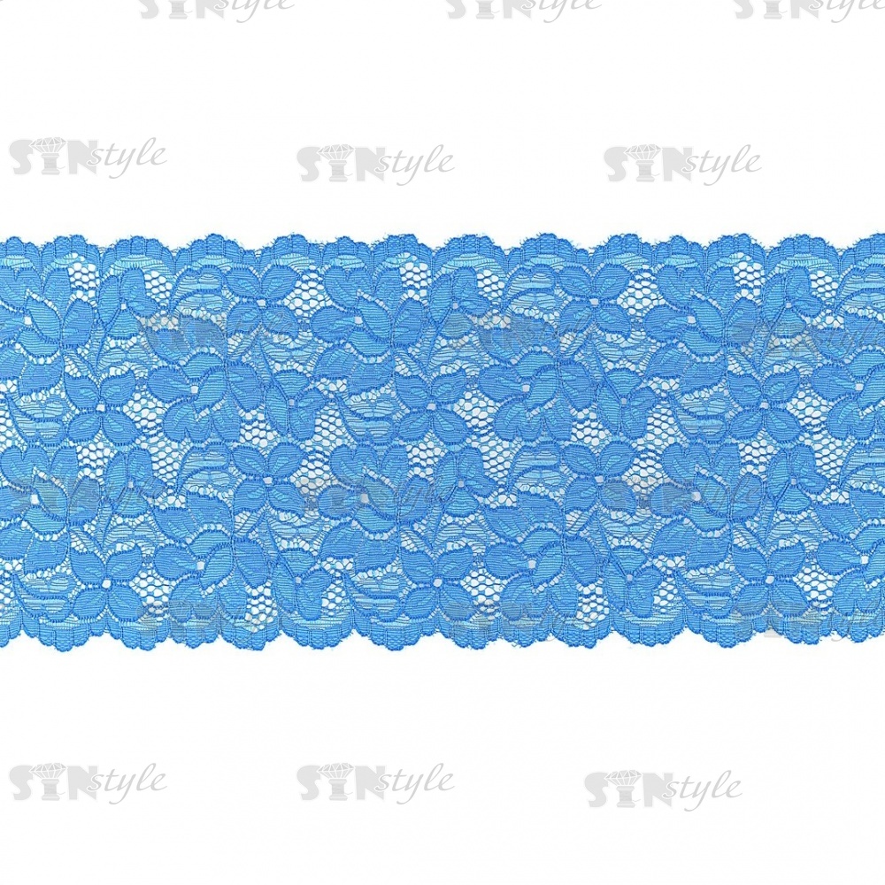 Кружево эластичное, ширина 140 мм, цвет синий, намотка 15 ярдов