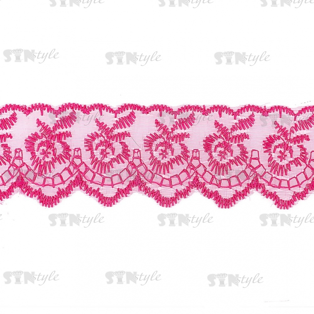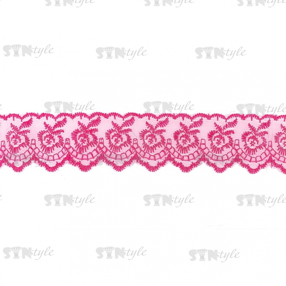 Кружево декоративное, нежная вышивка на тонкой капроновой основе, ширина 40 мм, цвет фуксия (28), намотка 10 ярдов