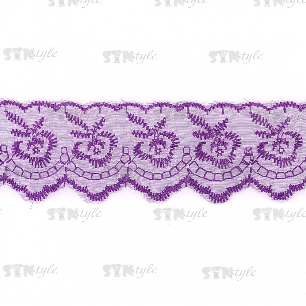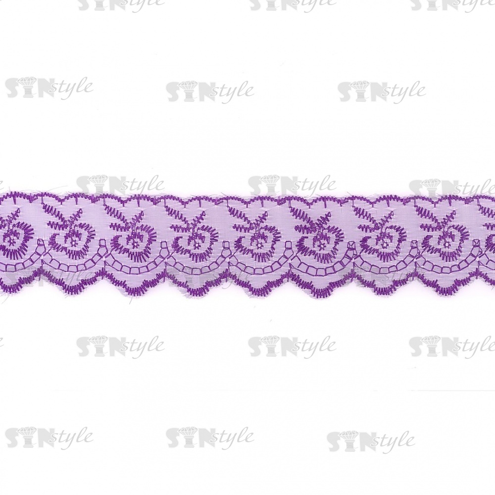 Кружево декоративное, нежная вышивка на тонкой капроновой основе, ширина 40 мм, цвет фиолетовый (29), намотка 10 ярдов