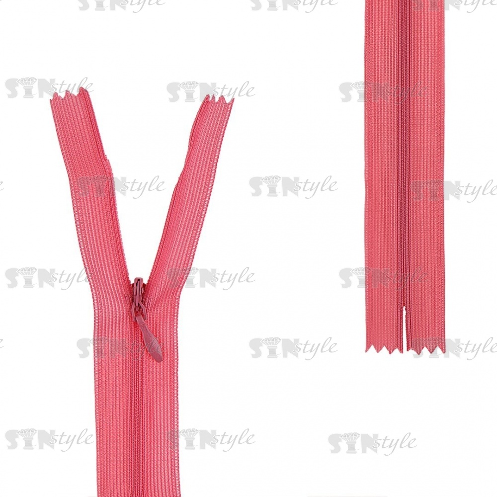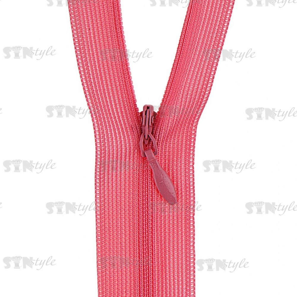 Молния спираль, тип 3, потайная, неразъемная, основа капрон, длина 50 см, цвет 137 (темно-розовый), бегунок цвета основы