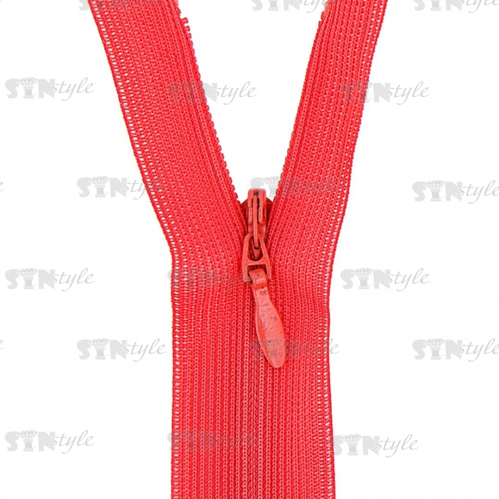 Молния спираль, тип 3, потайная, неразъемная, основа капрон, длина 50 см, цвет 147 (коралл), бегунок цвета основы