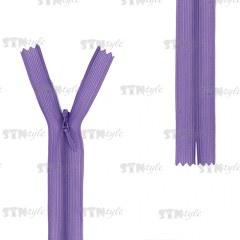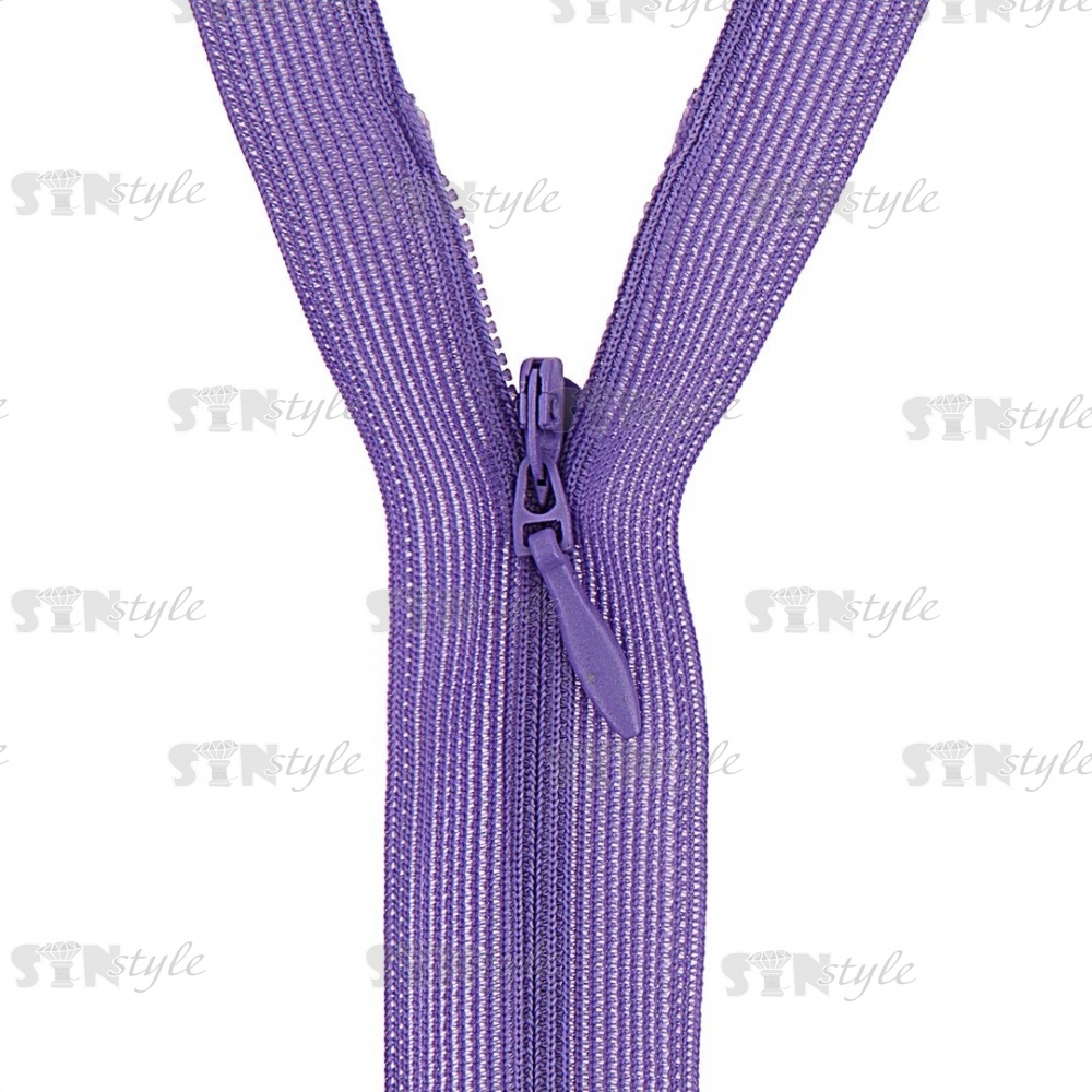 Молния спираль, тип 3, потайная, неразъемная, основа капрон, длина 50 см, цвет 171 (сиреневый), бегунок цвета основы