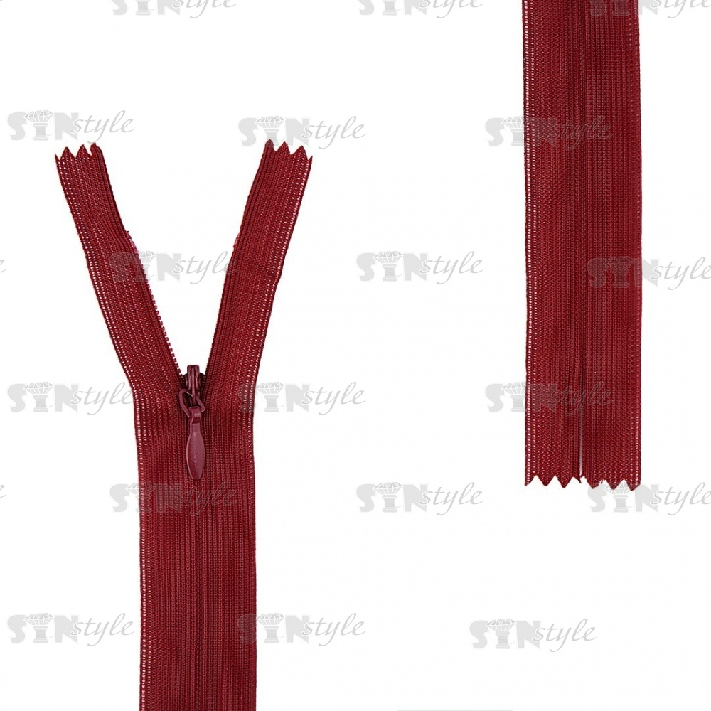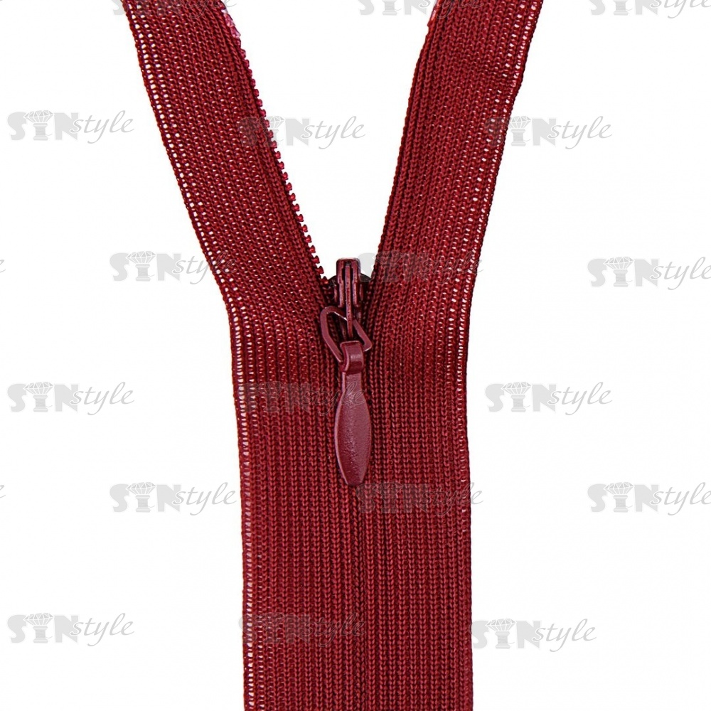 Молния спираль, тип 3, потайная, неразъемная, основа капрон, длина 50 см, цвет 178 (бордовый), бегунок цвета основы