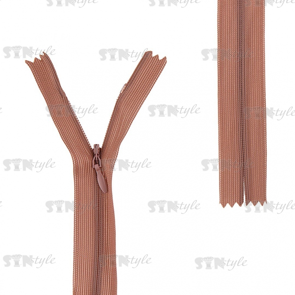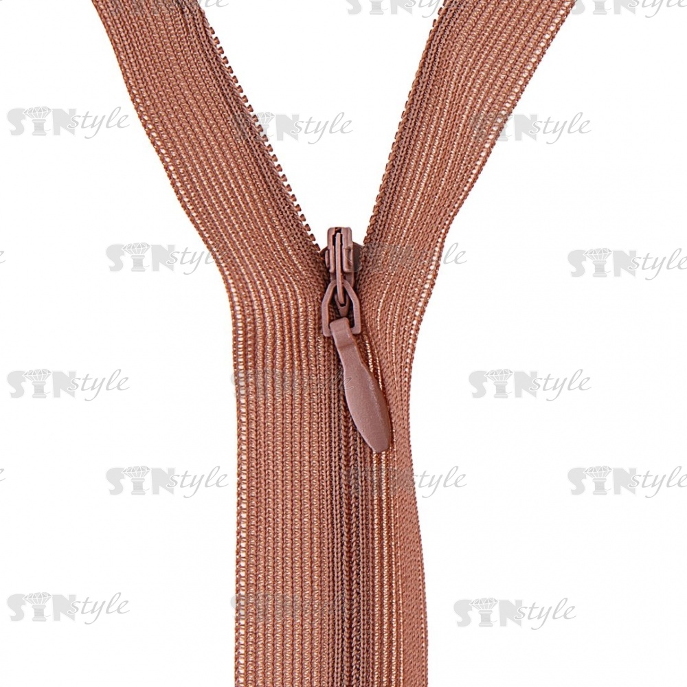 Молния спираль, тип 3, потайная, неразъемная, основа капрон, длина 50 см, цвет 293 (капучино), бегунок цвета основы
