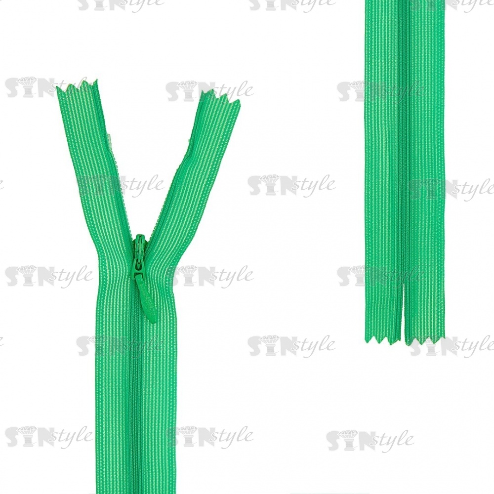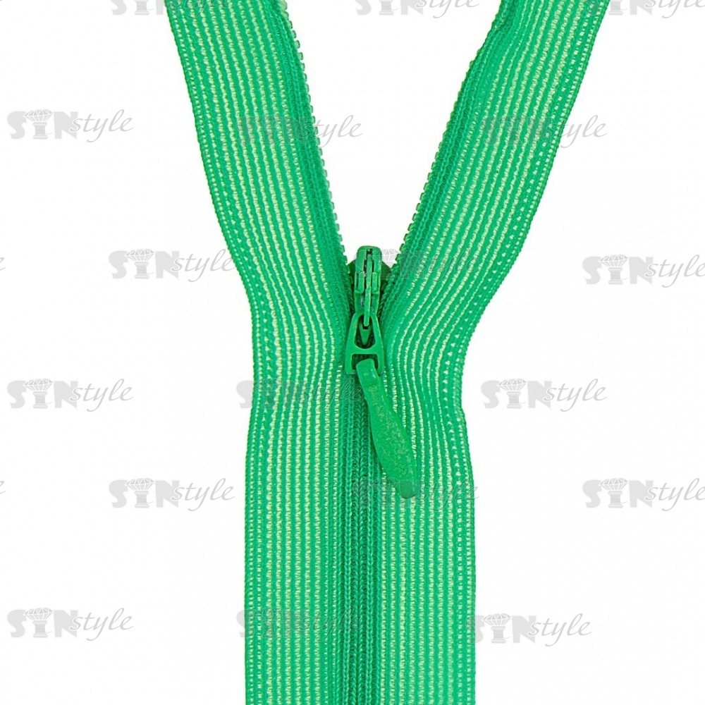 Молния спираль, тип 3, потайная, неразъемная, основа капрон, длина 50 см, цвет 334 (ярко-салатовый), бегунок цвета основы