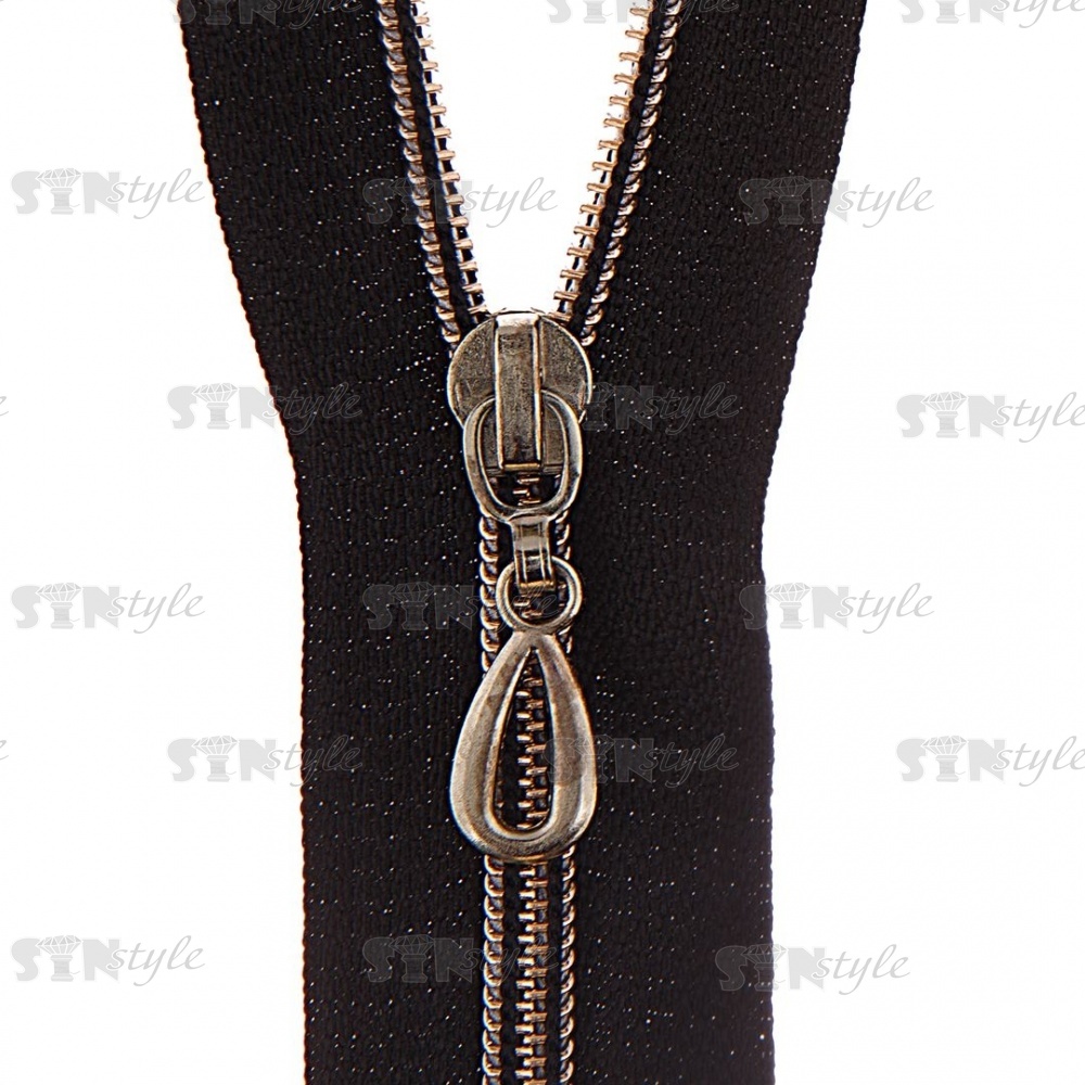 Молния спираль, тип 5, разъемная, основа нейлон, длина 100 см., цвет 322 (черный), металлизированная "золотистая" змейка, бегунок "капля", золотистый