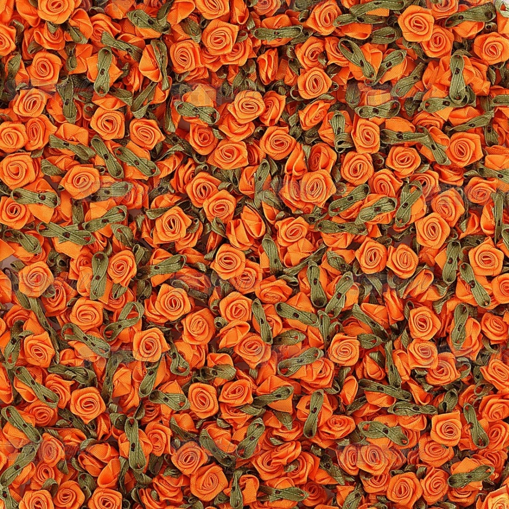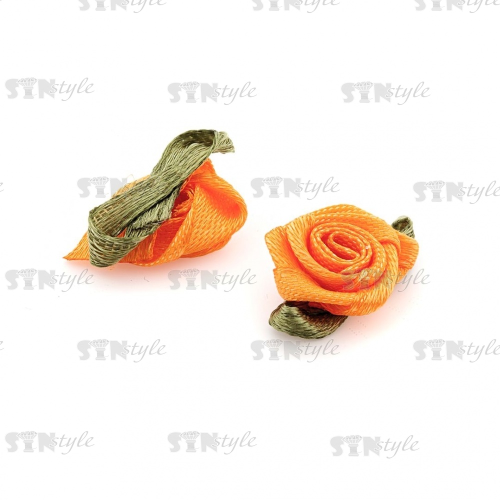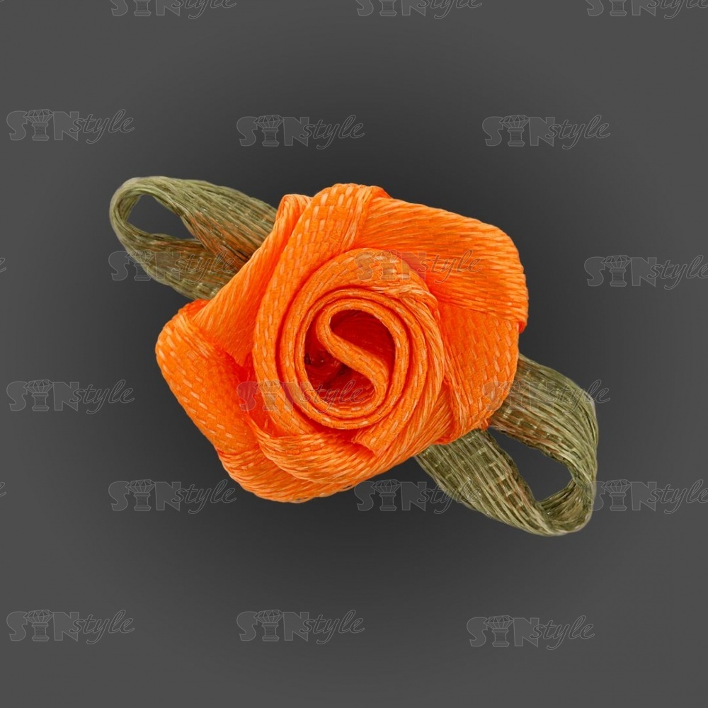 Цветочек из атласной ленты, оранжевый, размер 15 мм