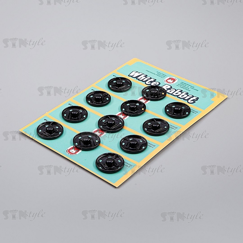 Кнопки пришивные, металлические, цвет черный, размер 25 мм, на пластине 12 шт.