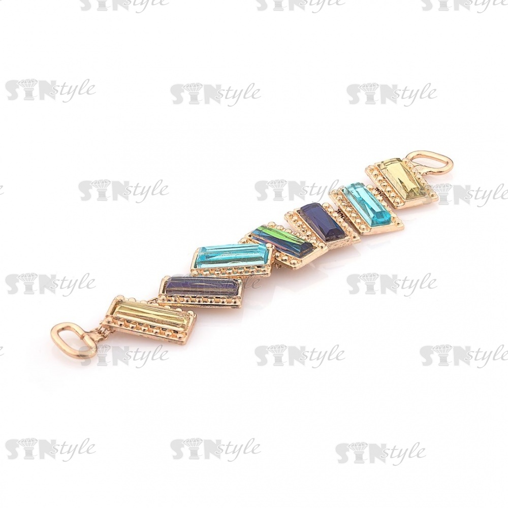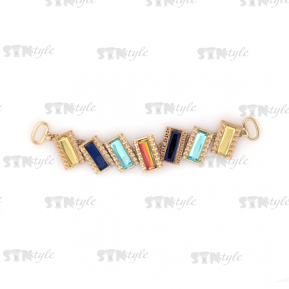 Декоративное украшение пришивное металлическое, цвет золото+цветные стразы, размер 123х20 мм
