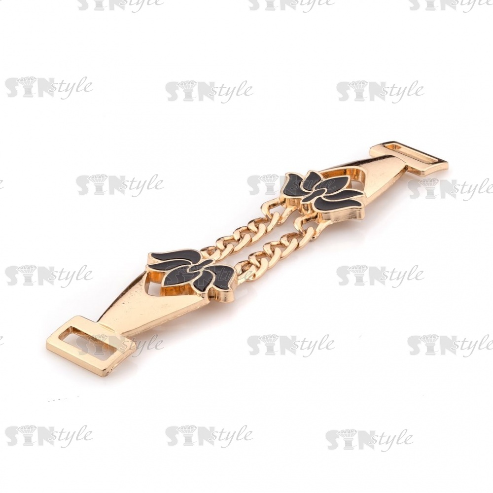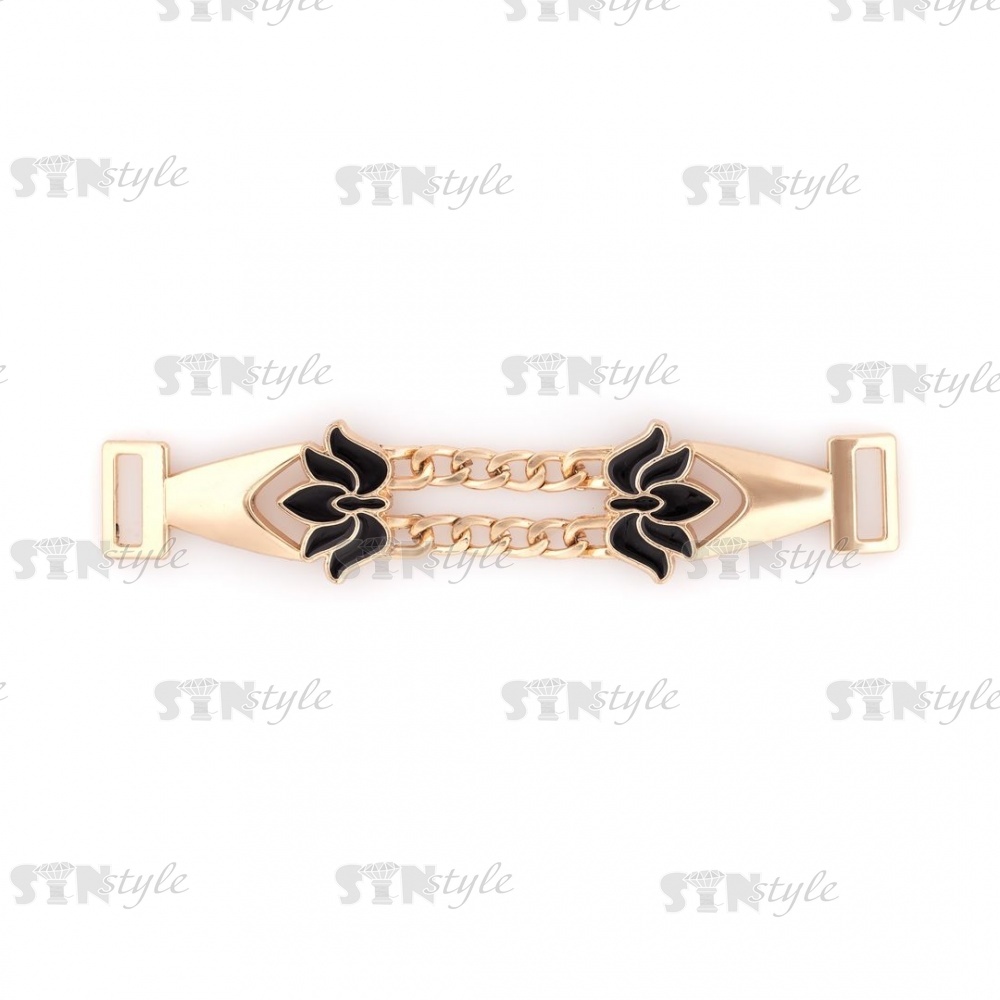 Декоративное украшение пришивное металлическое, цвет золото+черная эмаль, размер 135х27 мм