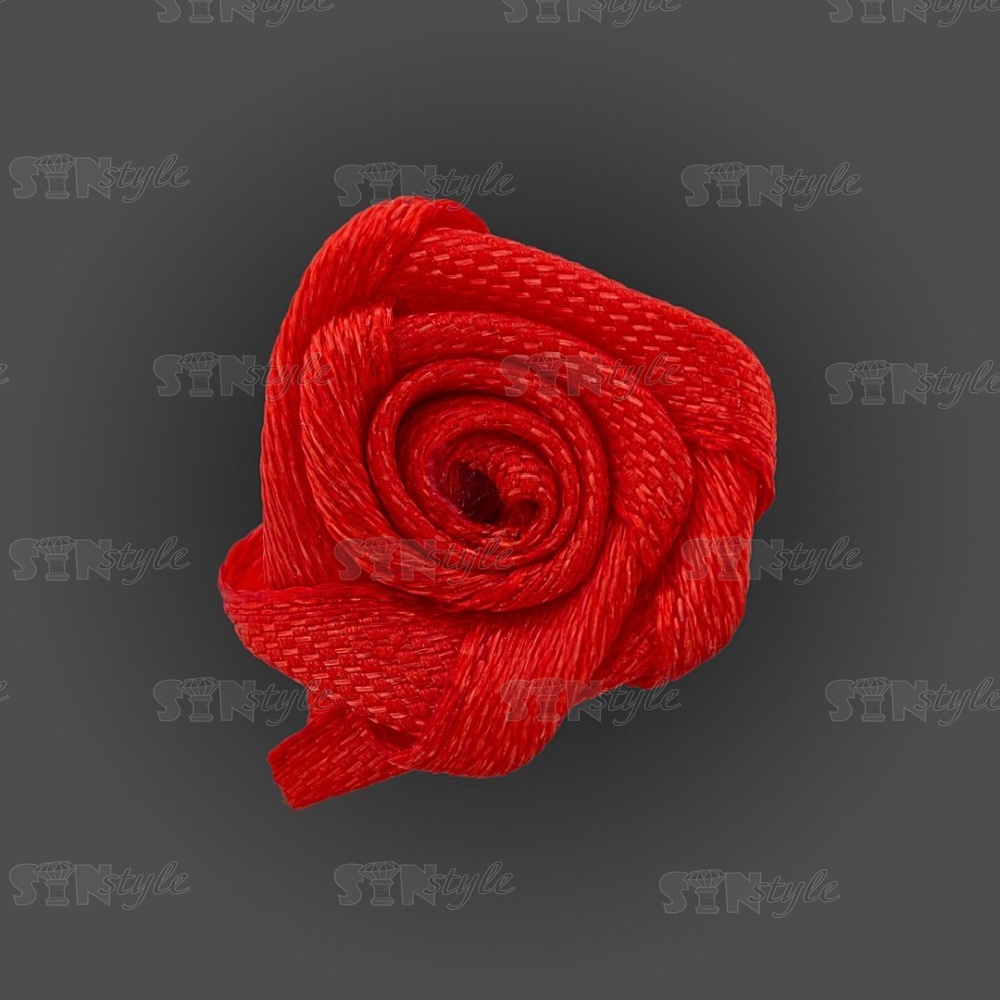 Цветочек из атласной ленты, красный, размер 15 мм,