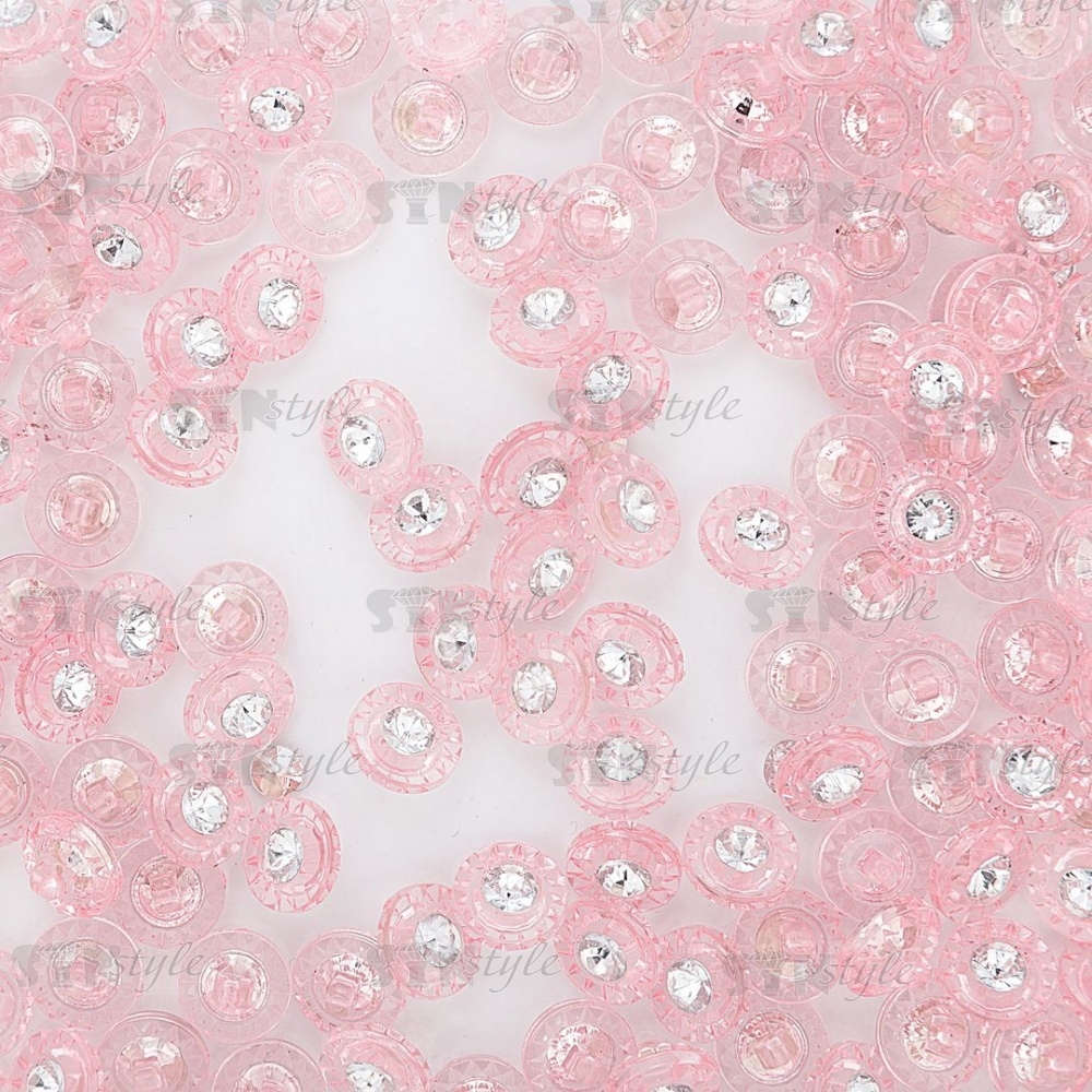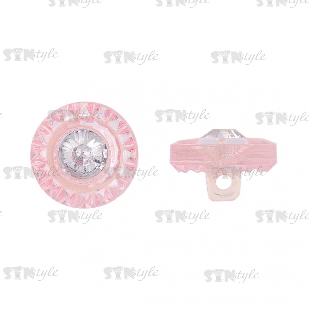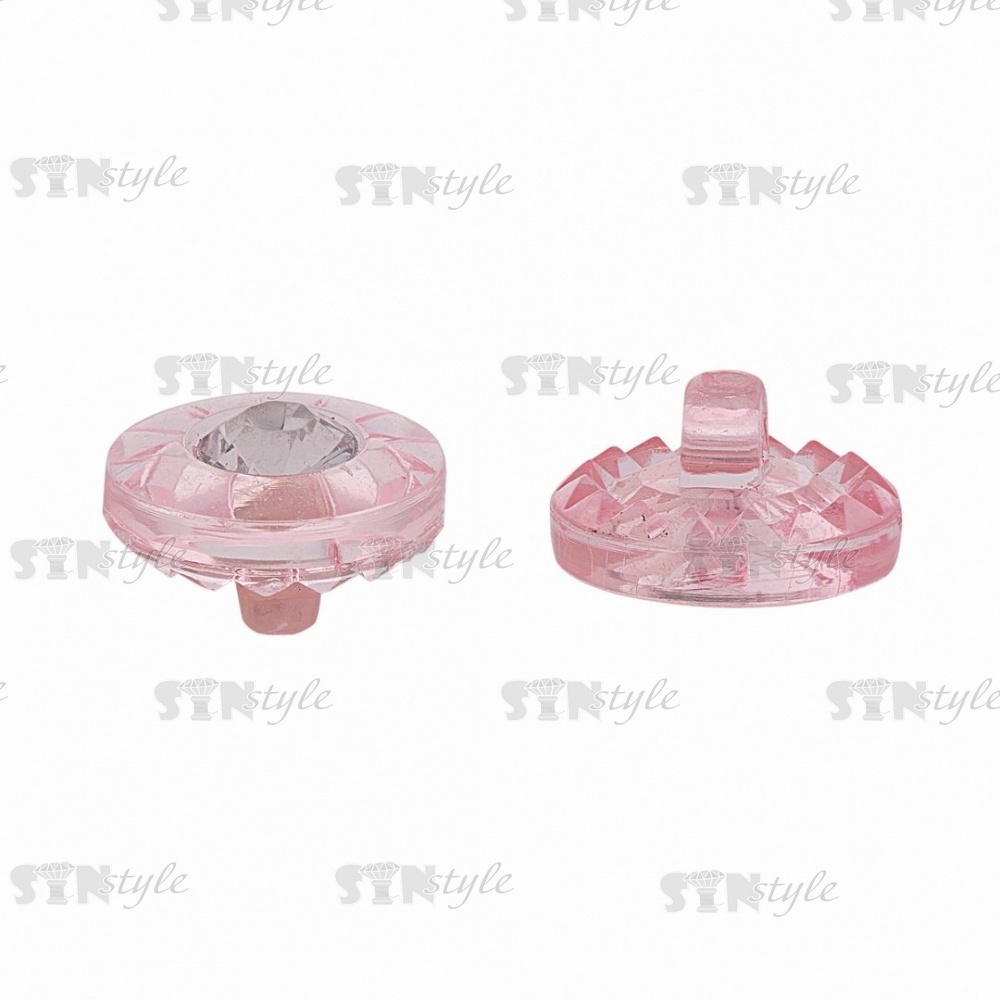 Пуговица пластиковая на ножке, круглая, розовая прозрачная с белой стразой в центре, 20L