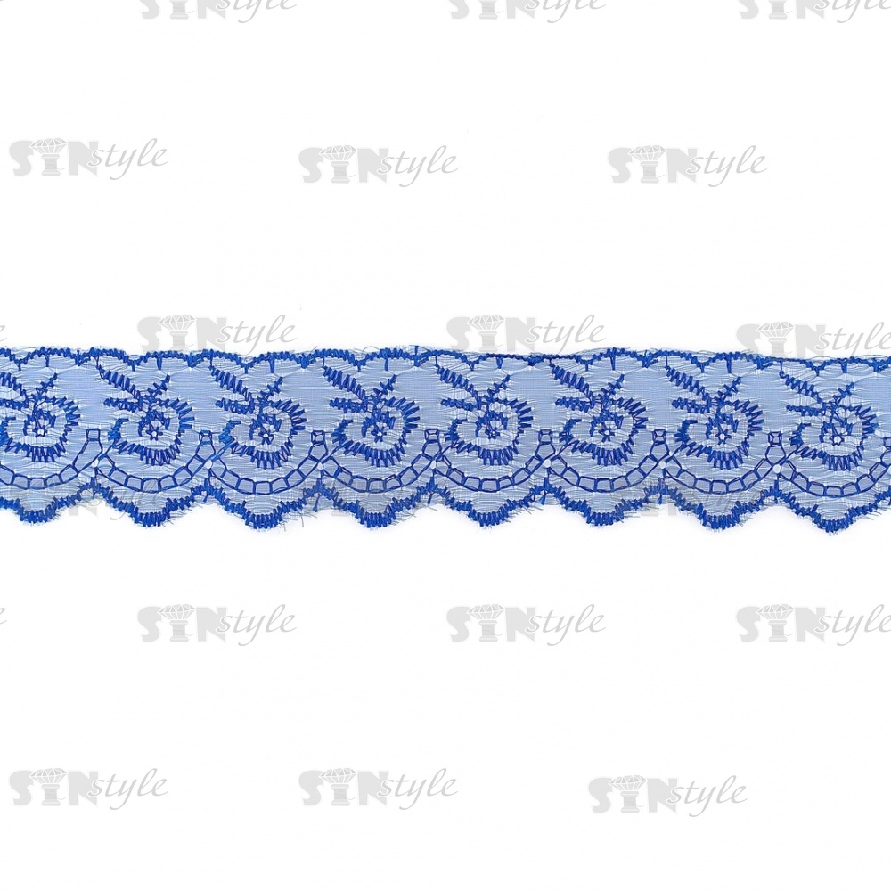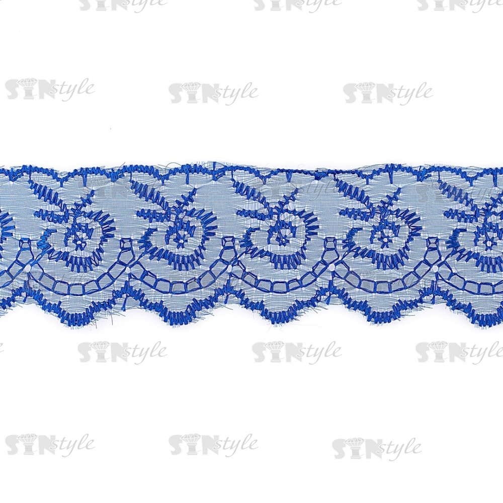 Кружево декоративное, нежная вышивка на тонкой капроновой основе, ширина 40 мм, цвет синий (40), намотка 10 ярдов
