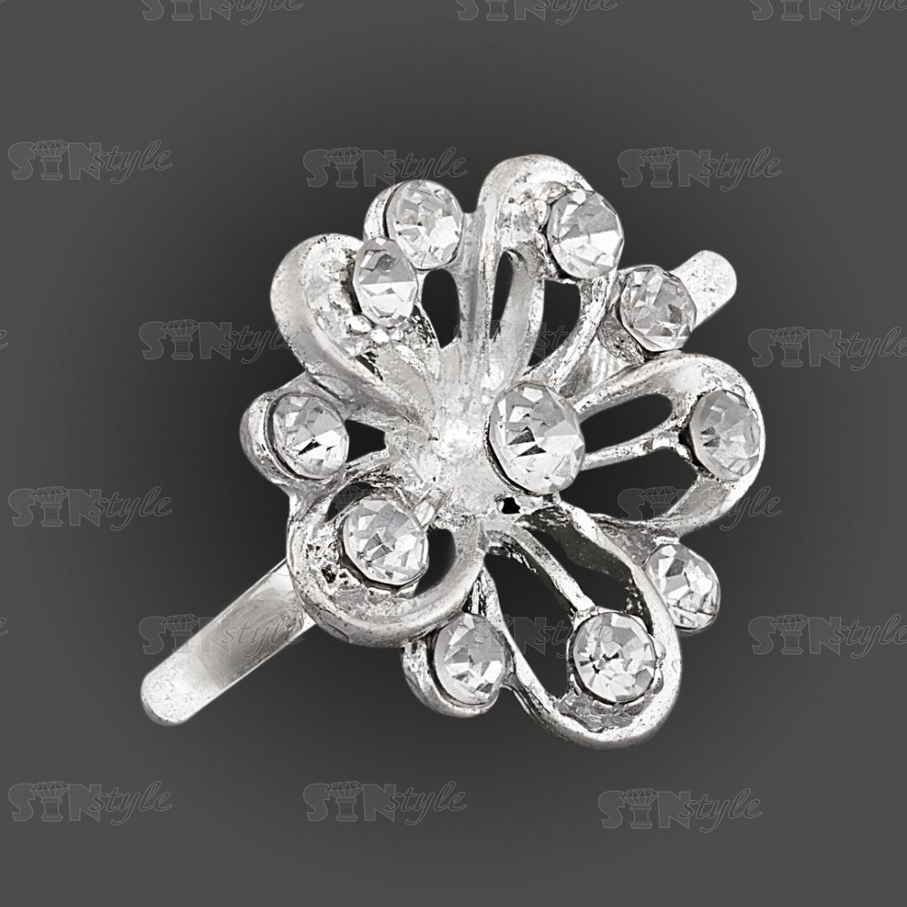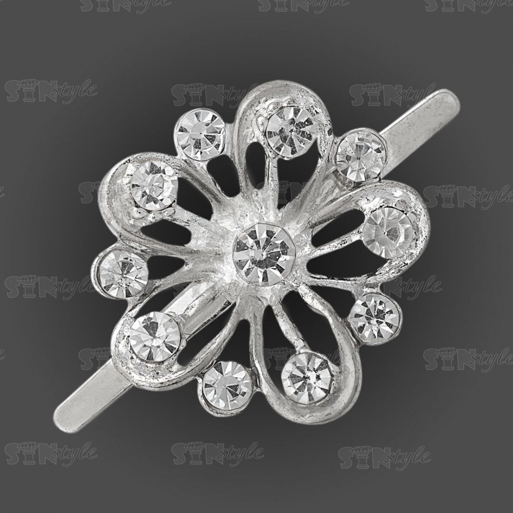 Брошь металлическая, крепление усики, диаметр 20 мм, цвет серебряный+белые стразы