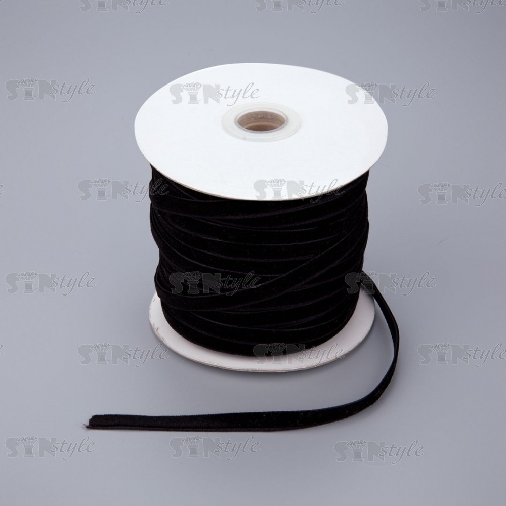 Лента бархатная, ширина 6 мм, цвет черный, намотка 50 ярдов