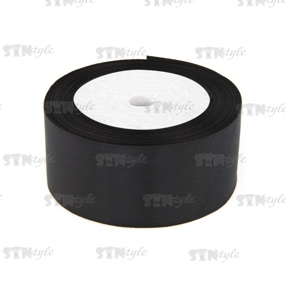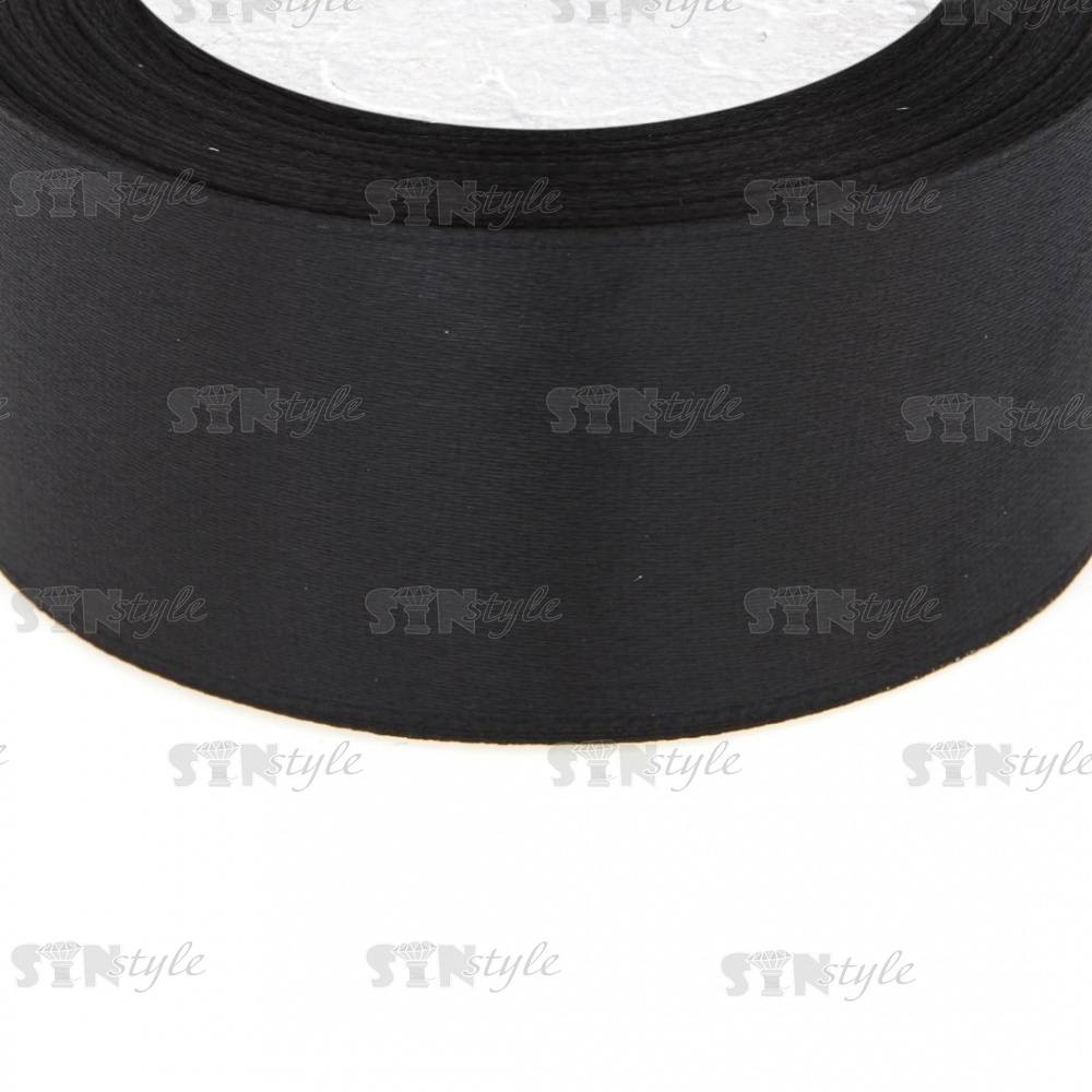 Декоративная лента атласная, ширина 38 мм, намотка 25 ярдов, цвет черный (№039)