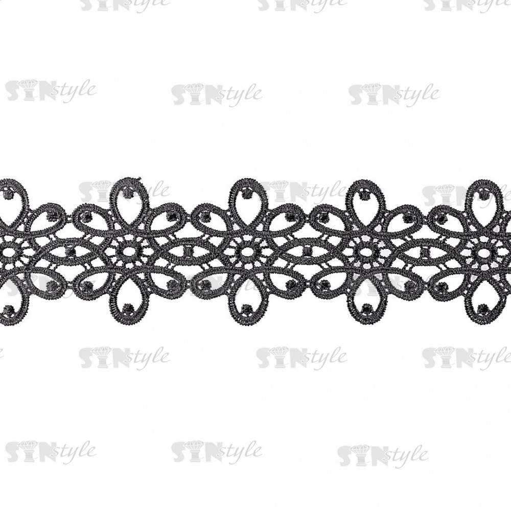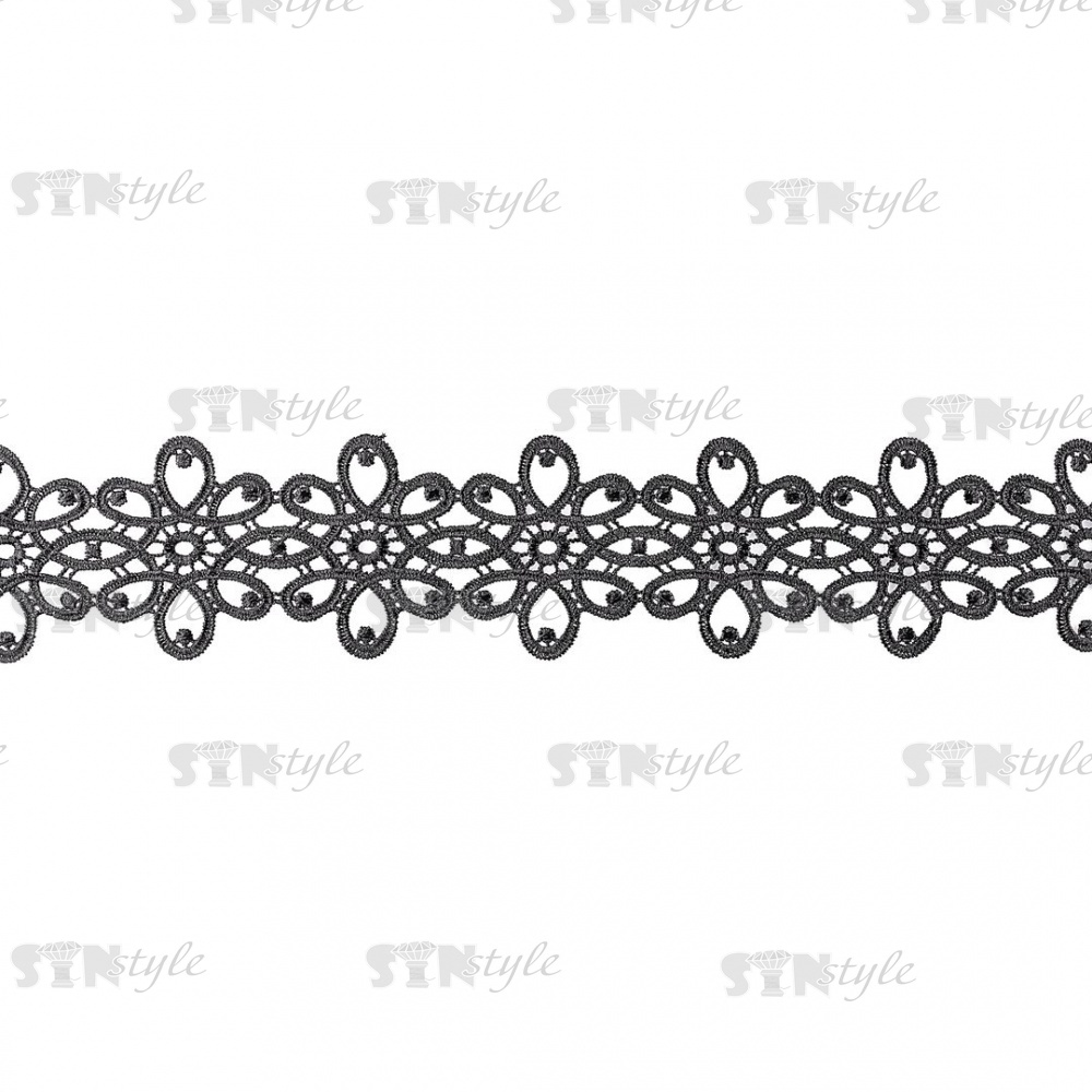 Кружево ажурное с цветочным орнаментом, ширина 63 мм, цвет черный, намотка 10 ярдов