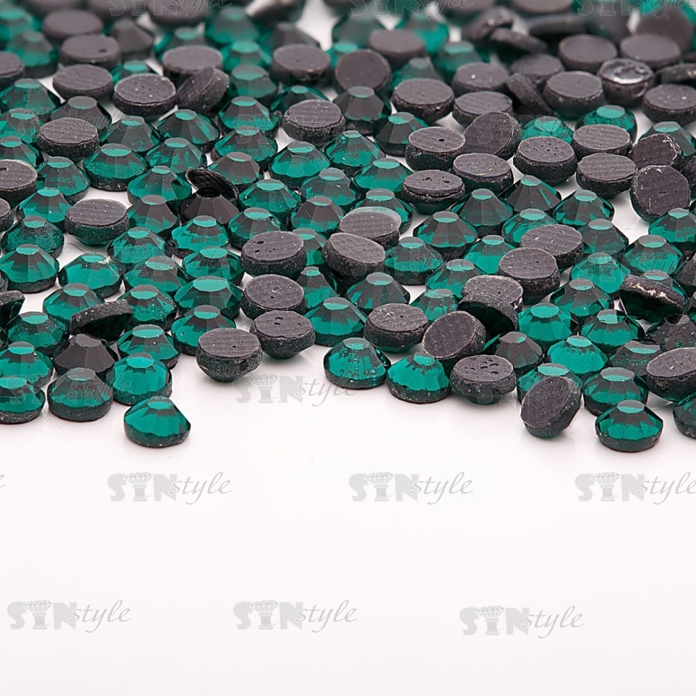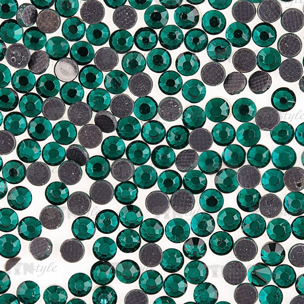 Стразы термоклеевые стеклянные SS10, форма круг, цвет зеленый (921)