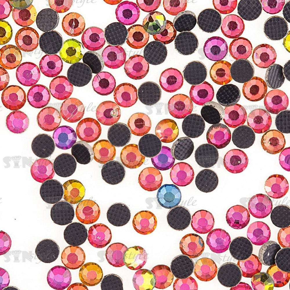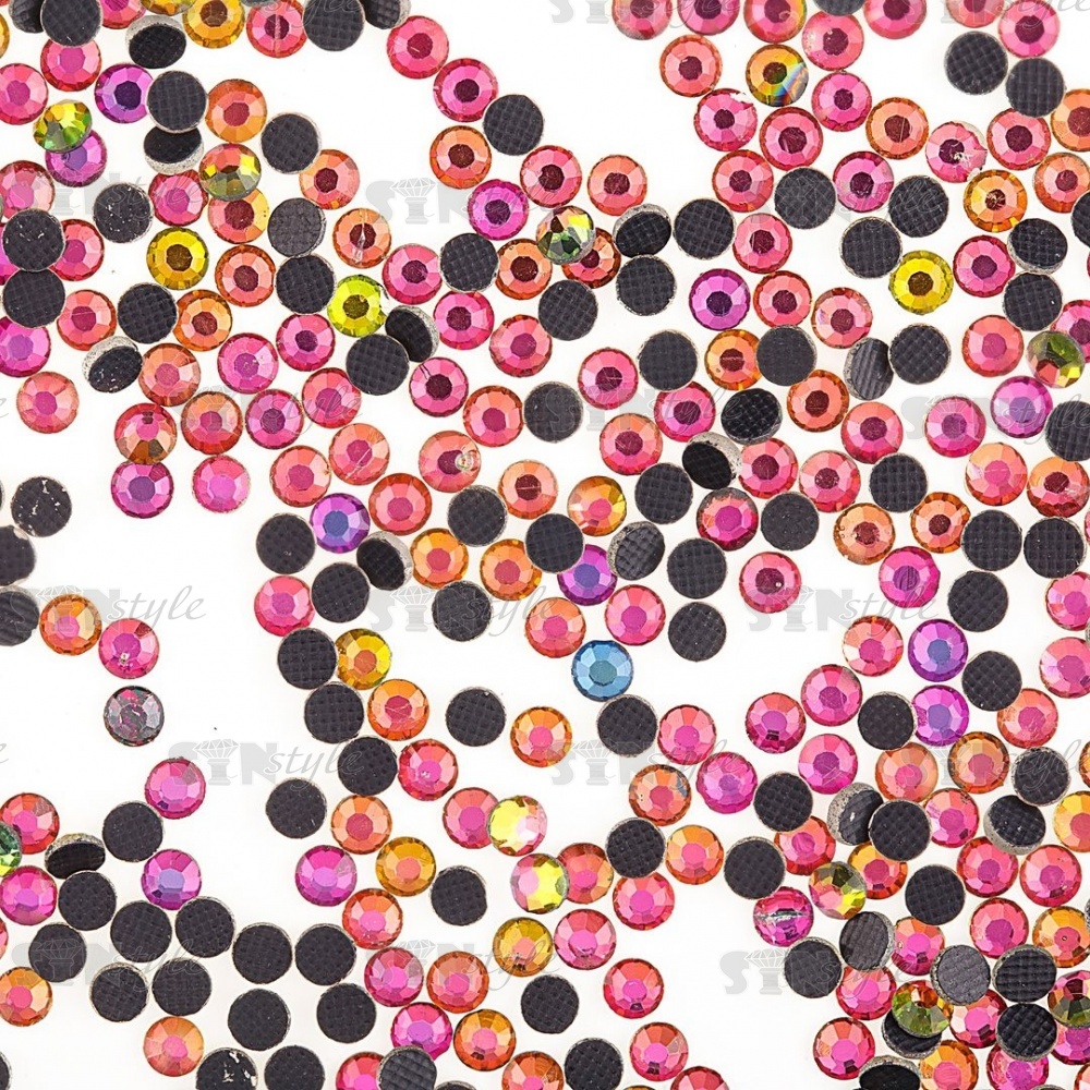 Стразы термоклеевые стеклянные SS16, форма круг, цвет розовый радужный (голография) (940), 1440 шт/уп