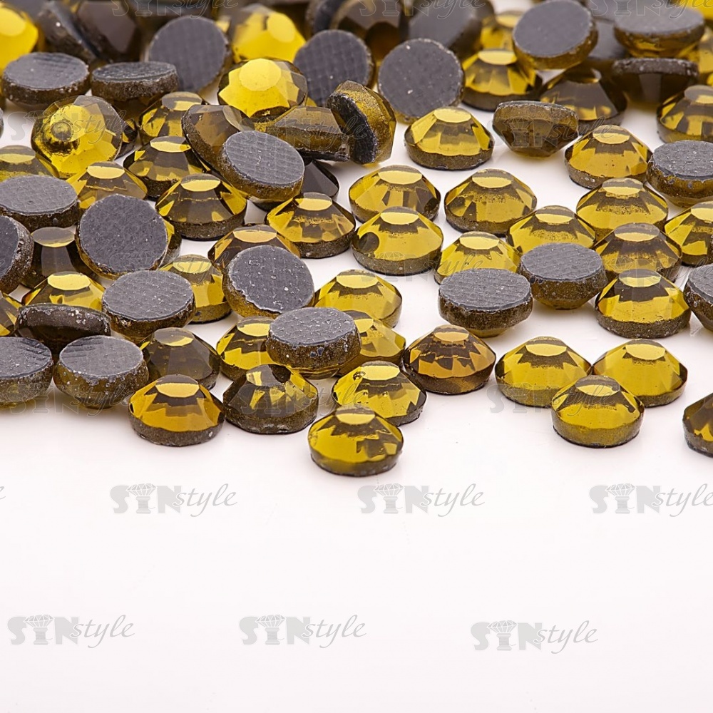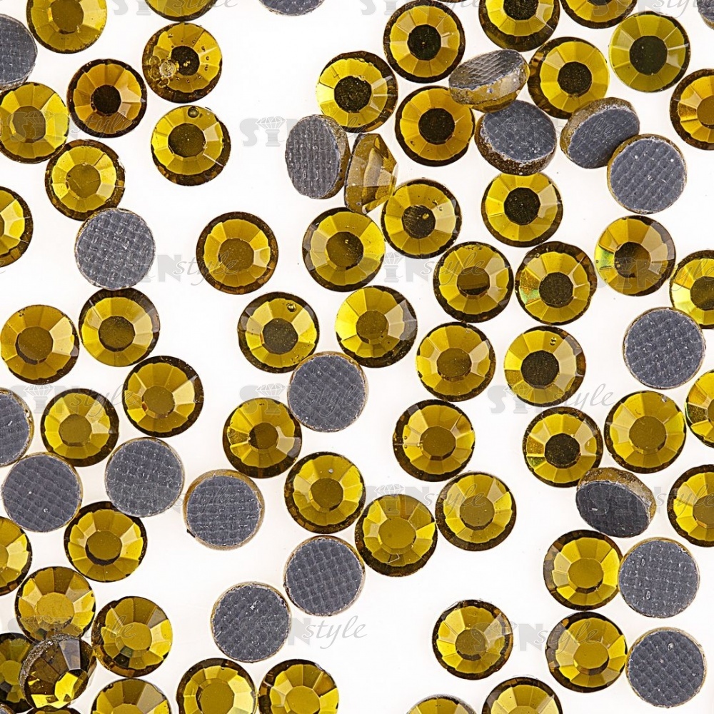 Стразы термоклеевые стеклянные SS16, форма круг, цвет оливковый (922),1440 шт/уп