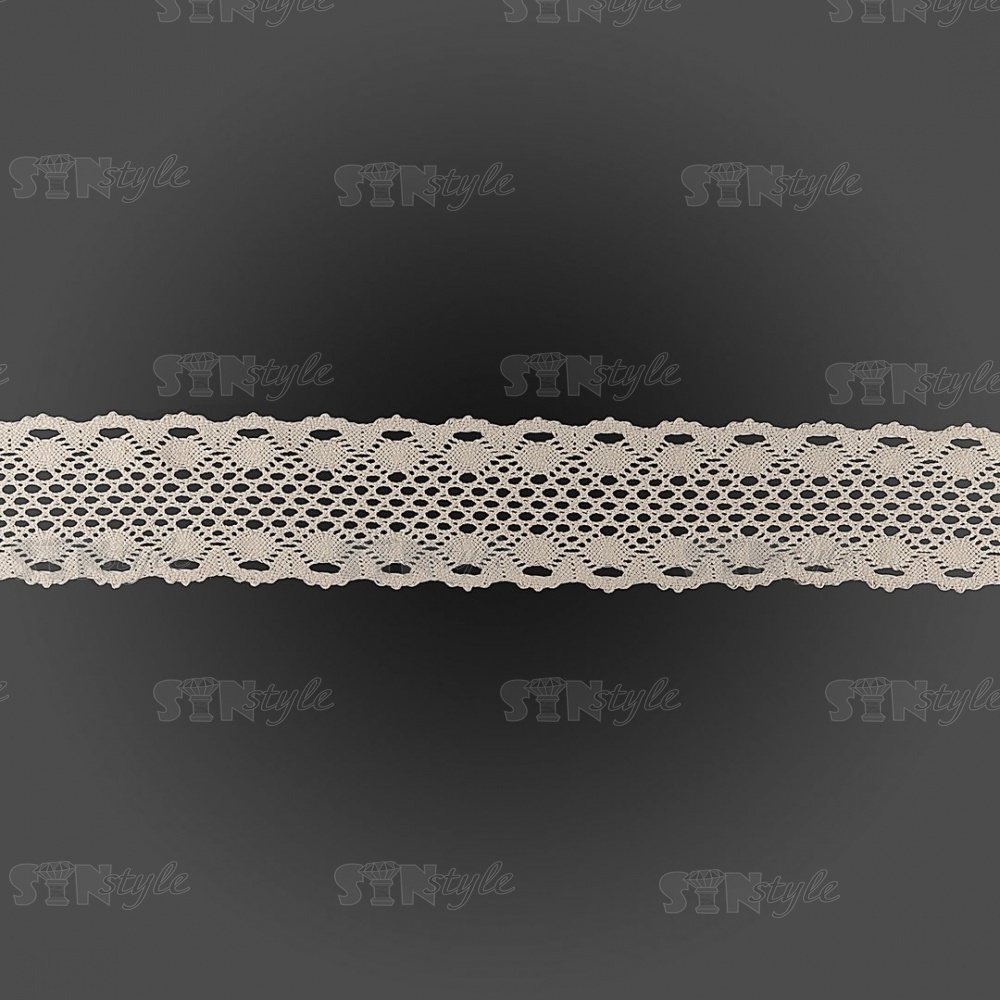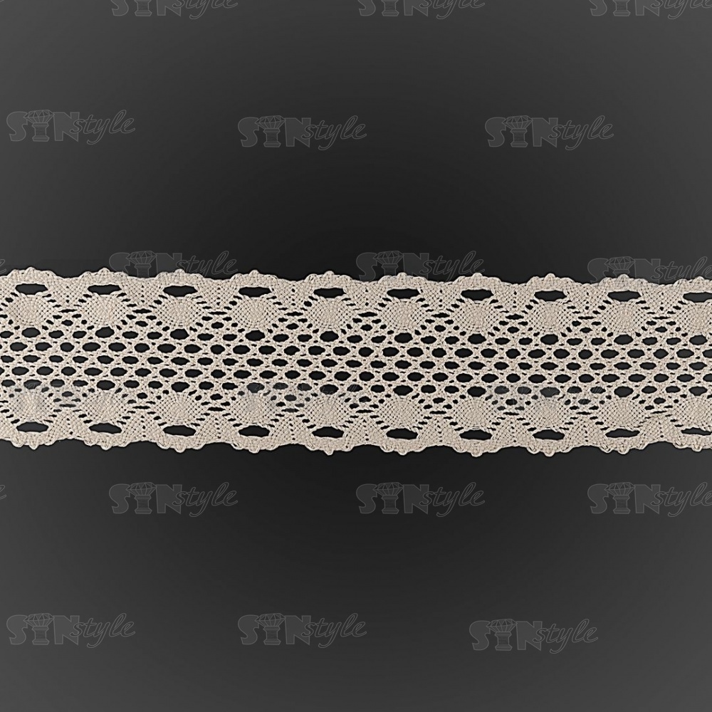 Кружево вязаное плетеное, ширина 70 мм, цвет бежевый, намотка 15 ярдов