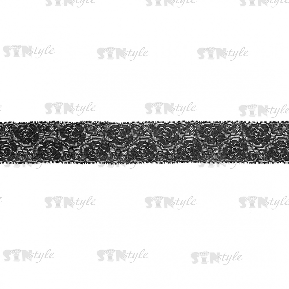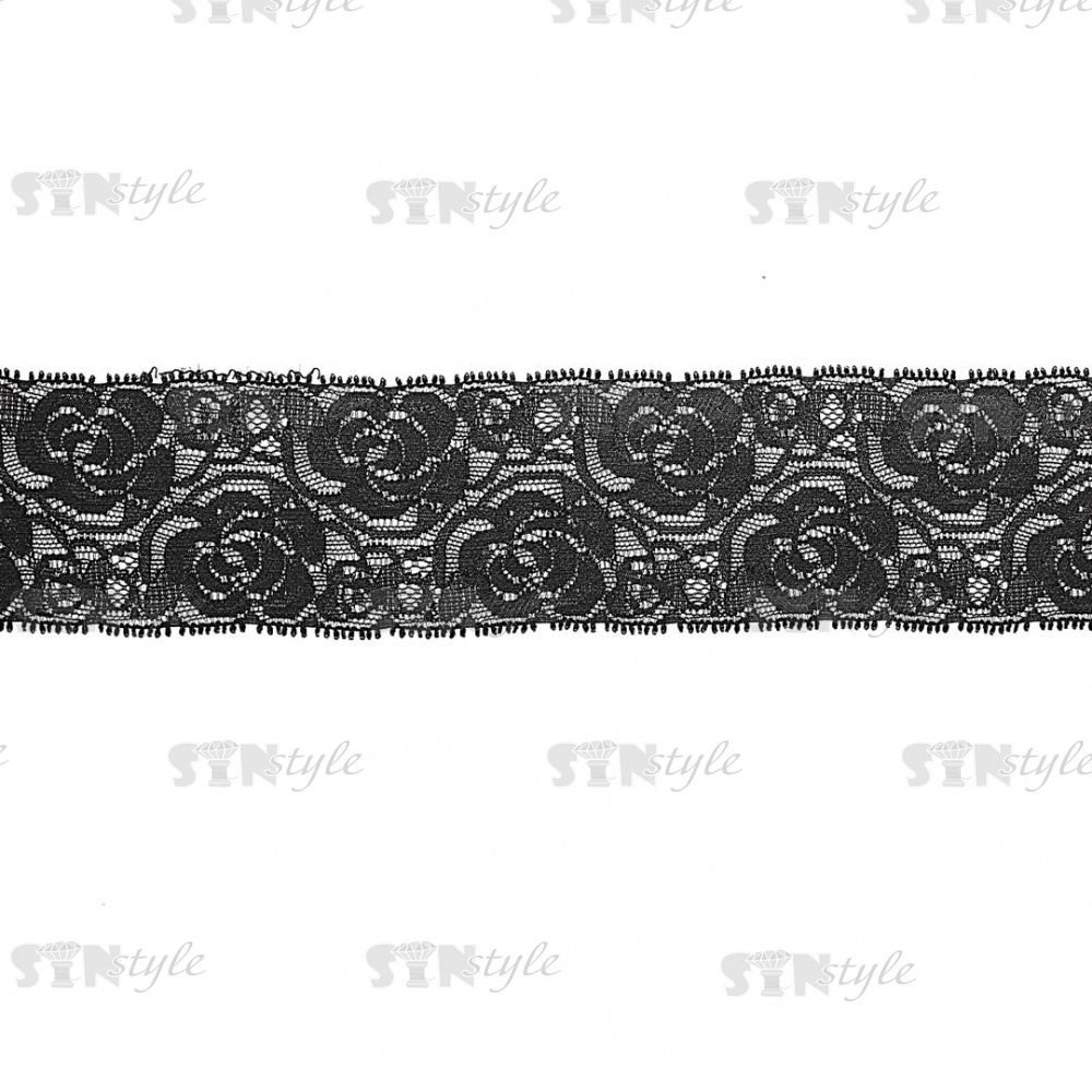 Кружево эластичное, ширина 55 мм, цвет черный, намотка 15 ярдов