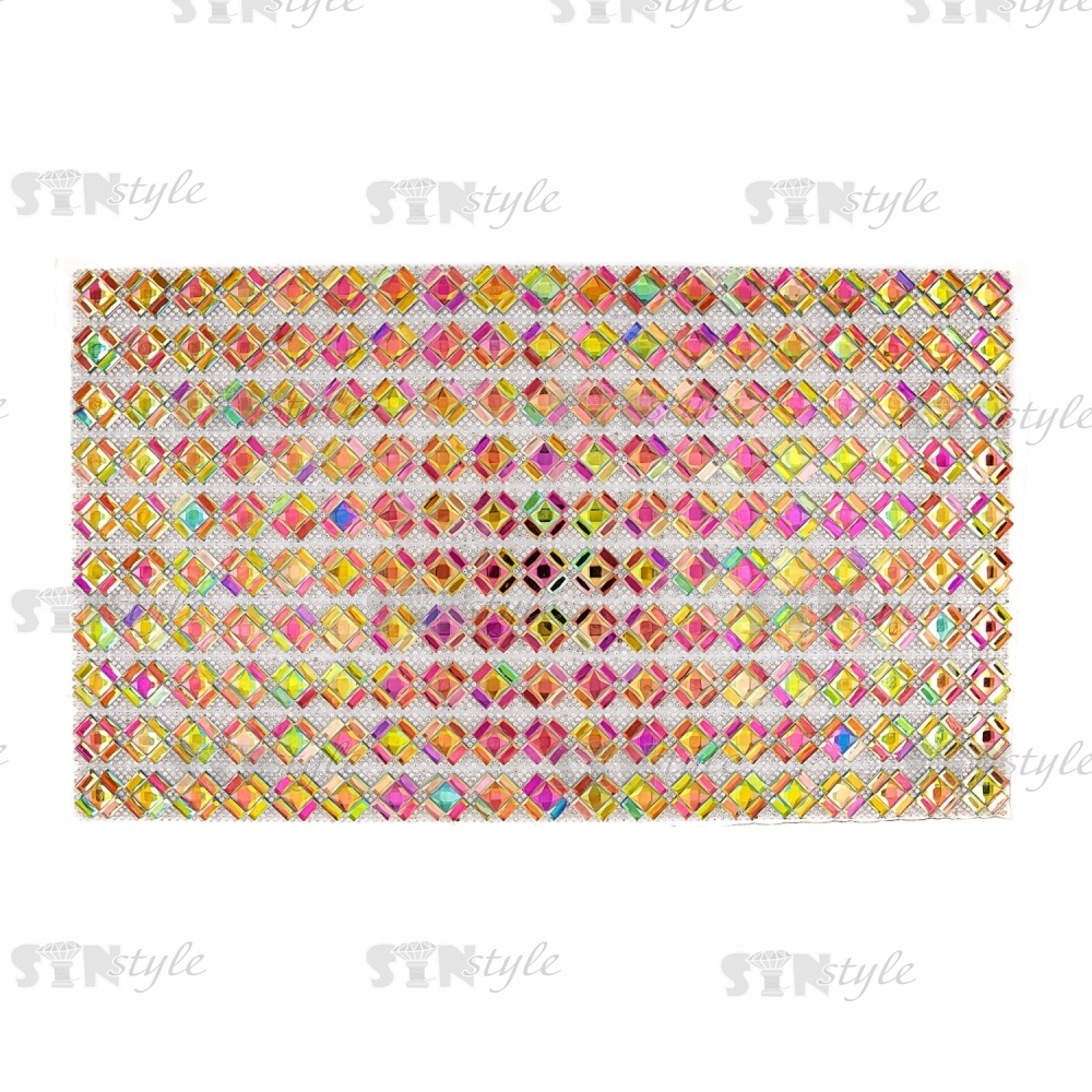 Термоаппликация из стеклянных страз, цвет радужный (голография), размер 23х400 мм, 10 рядов на листе