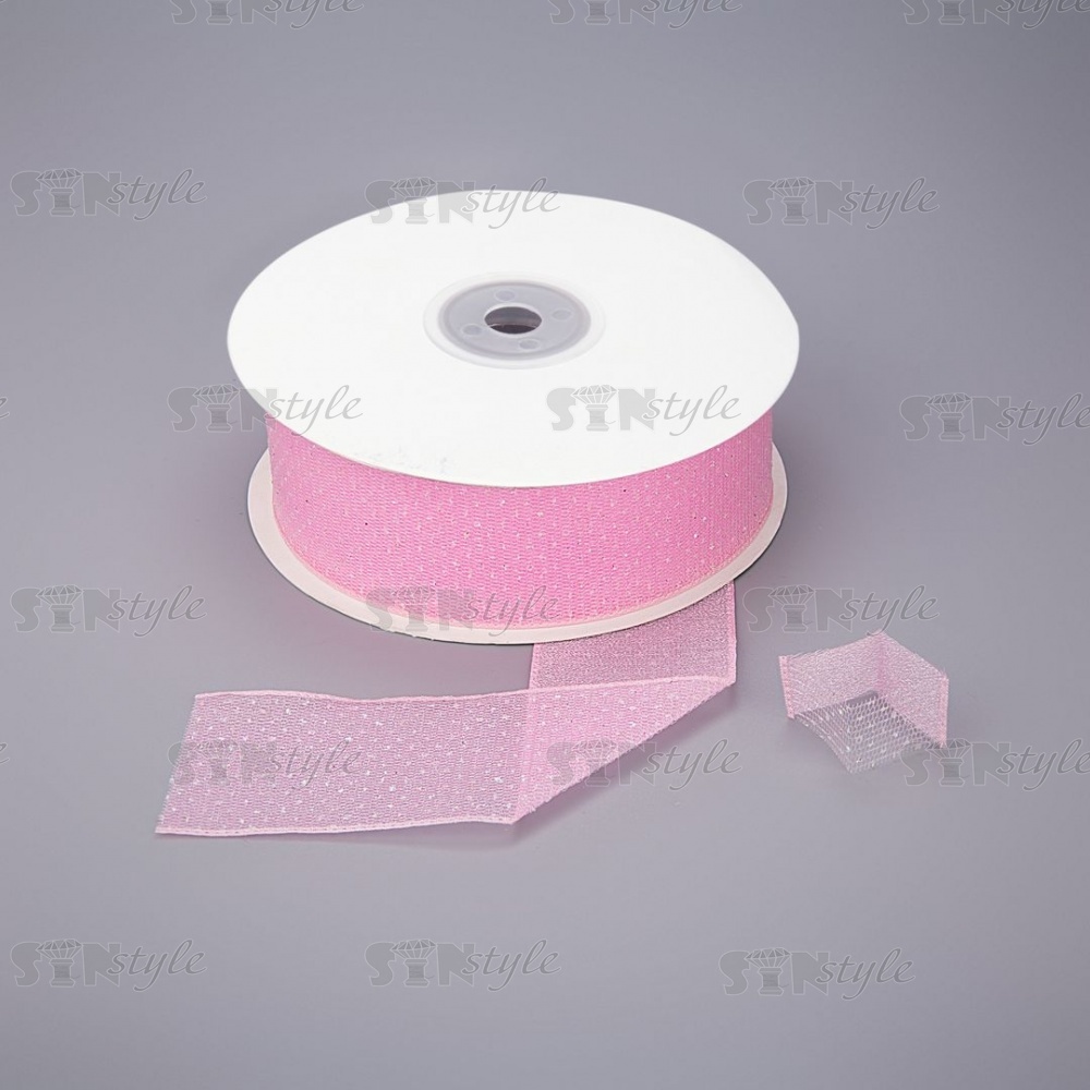 Декоративная лента капроновая двухслойная, ширина 40 мм, намотка 25 ярдов, цвет розовый