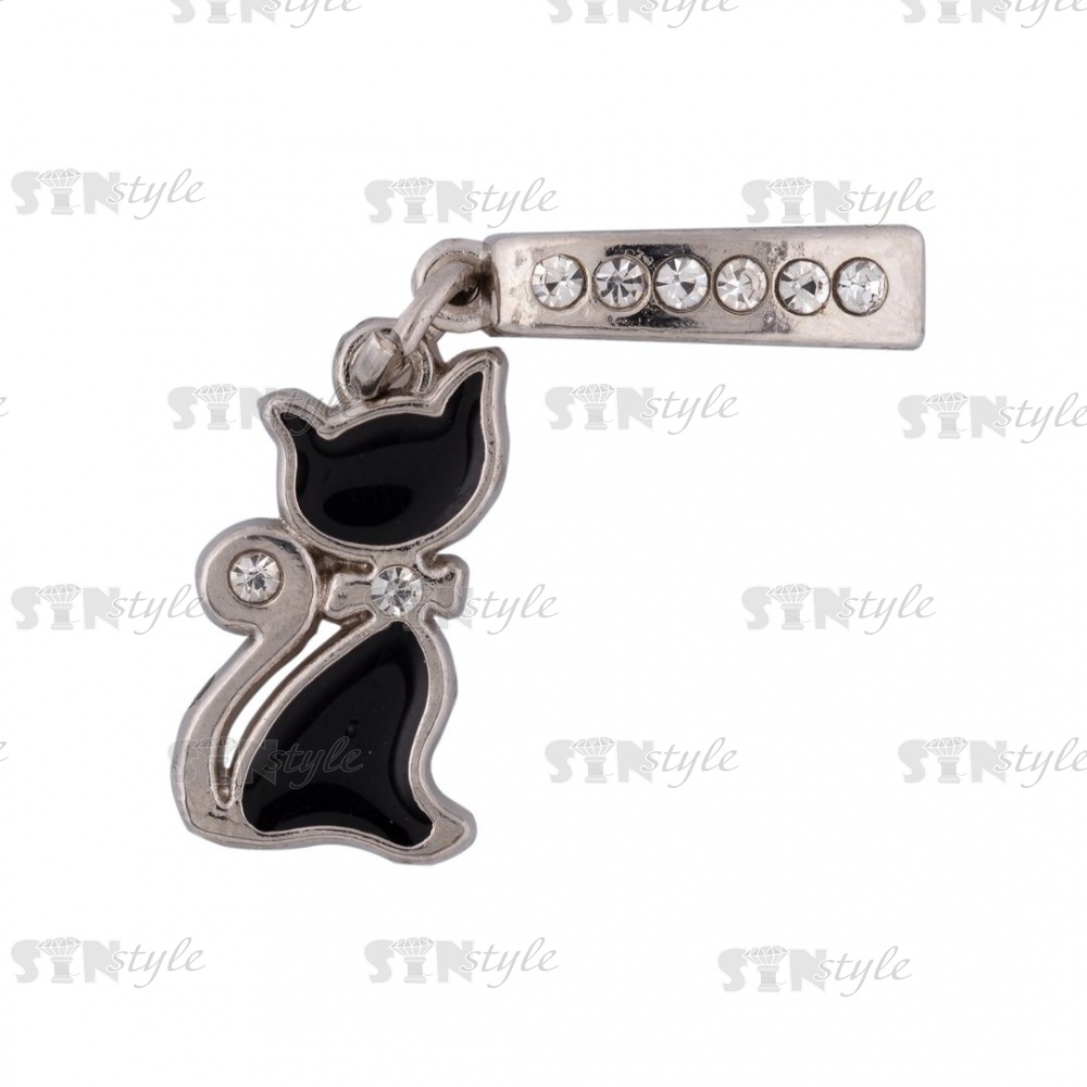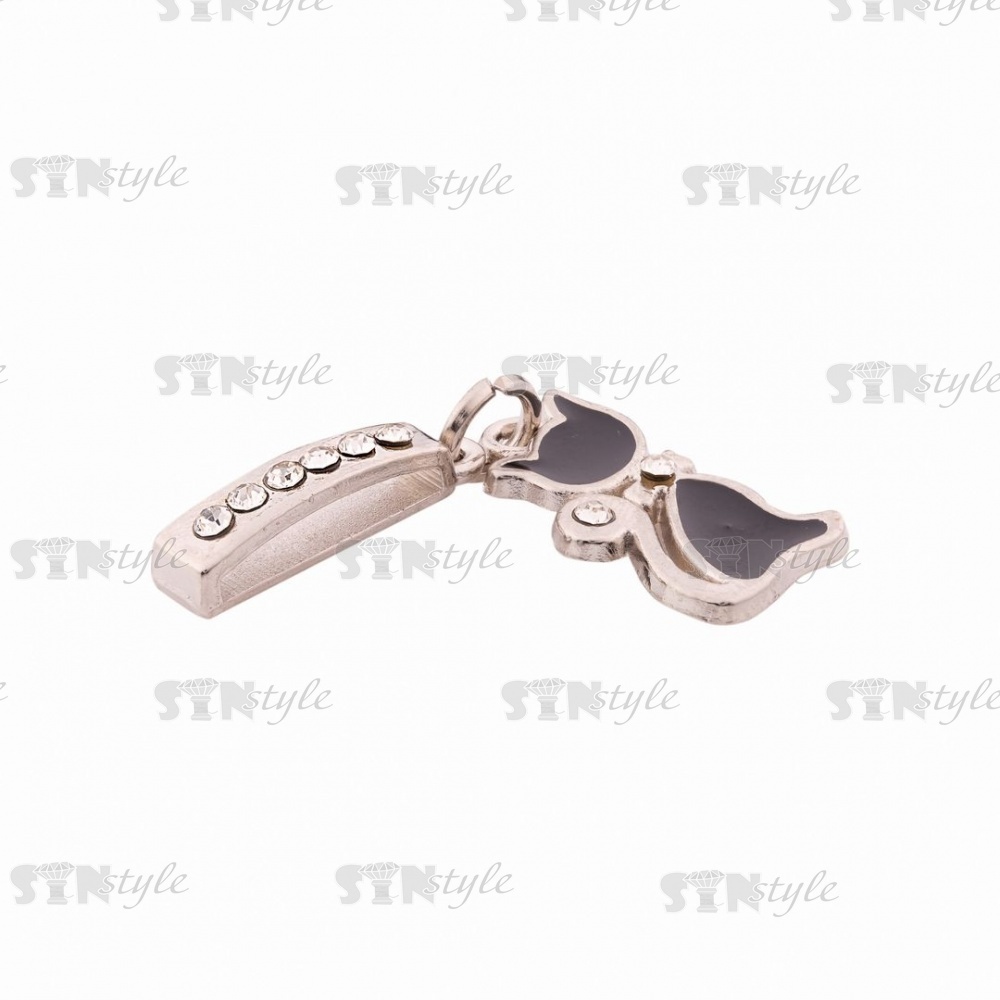 Подвеска металлическая, цвет никель+черная эмаль/белые стразы, размер 15*45 мм