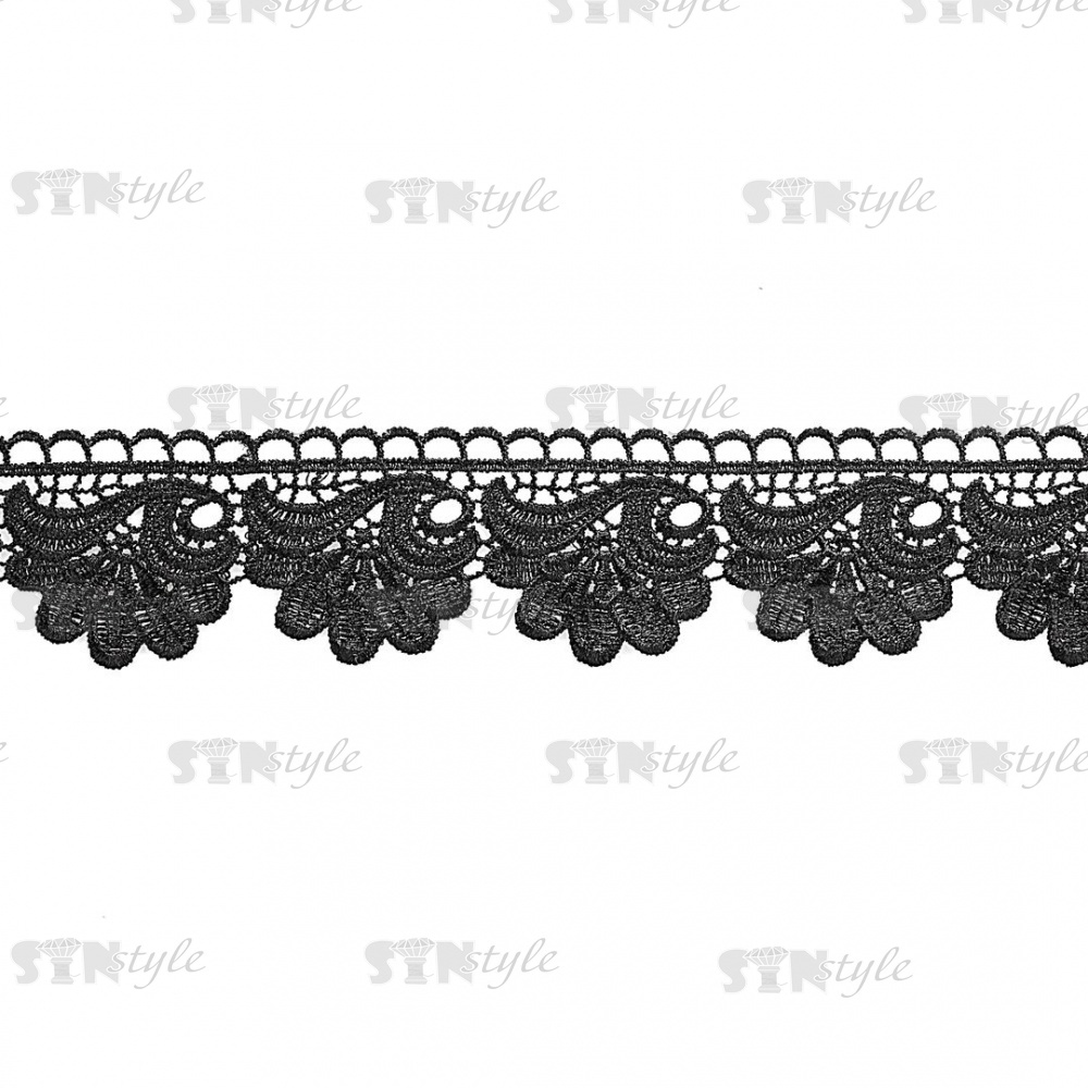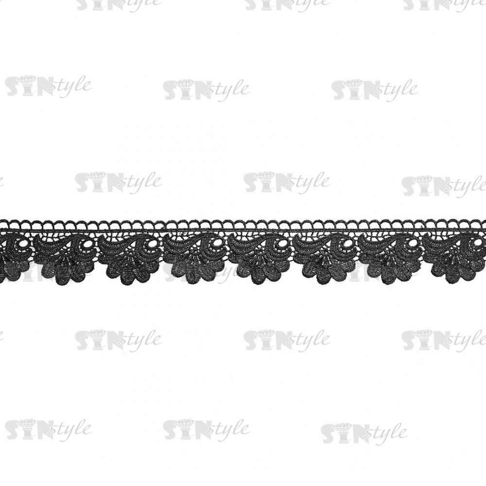 Кружево ажурное с цветочным орнаментом, ширина 55 мм, цвет черный, намотка 14,3 ярдов
