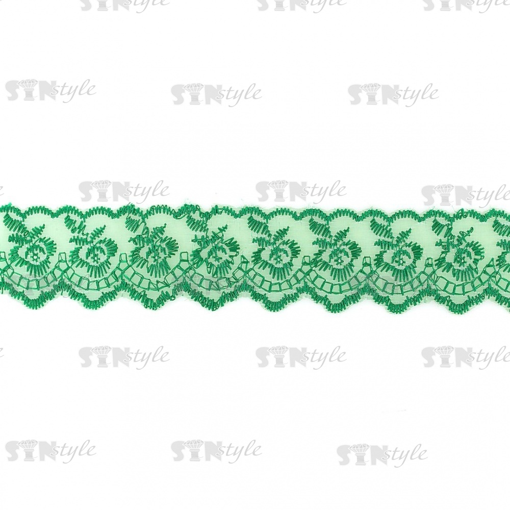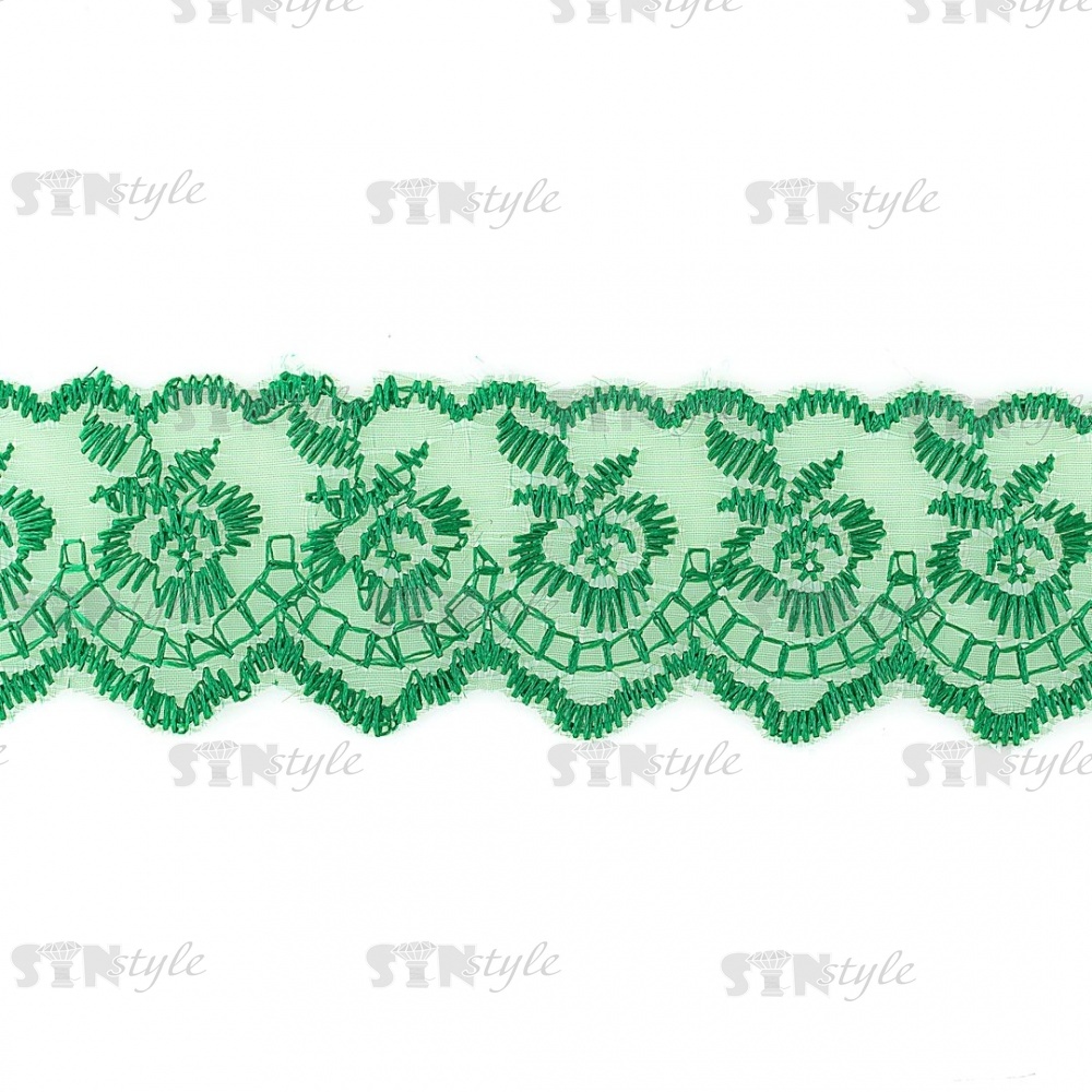 Кружево декоративное, нежная вышивка на тонкой капроновой основе, ширина 40 мм, цвет зеленый (19), намотка 10 ярдов