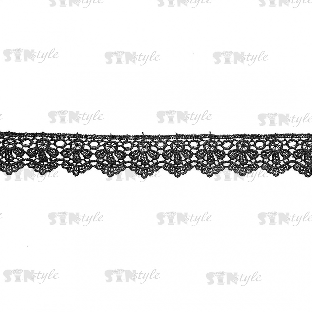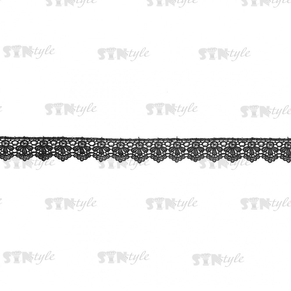 Кружево ажурное с причудливым узором и фестонами по краю, ширина 35 мм, цвет черный, намотка 15 ярдов
