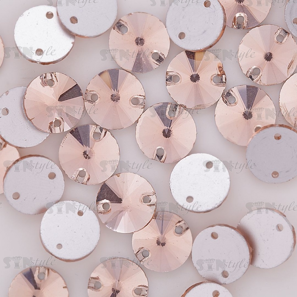Стразы пришивные стеклянные, форма круг, цвет №22 (пудровый), диаметр 12 мм