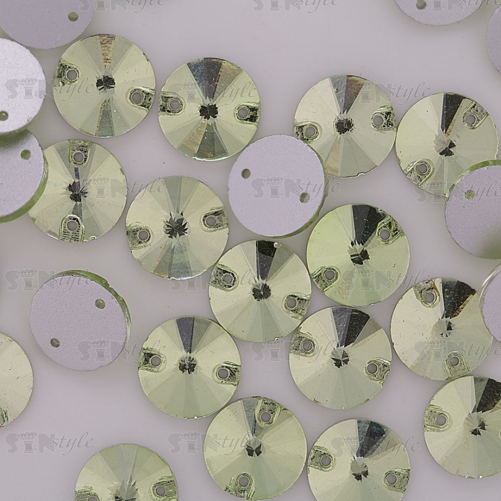 Стразы пришивные стеклянные, форма круг, цвет (салатовый) №27, диаметр 12 мм