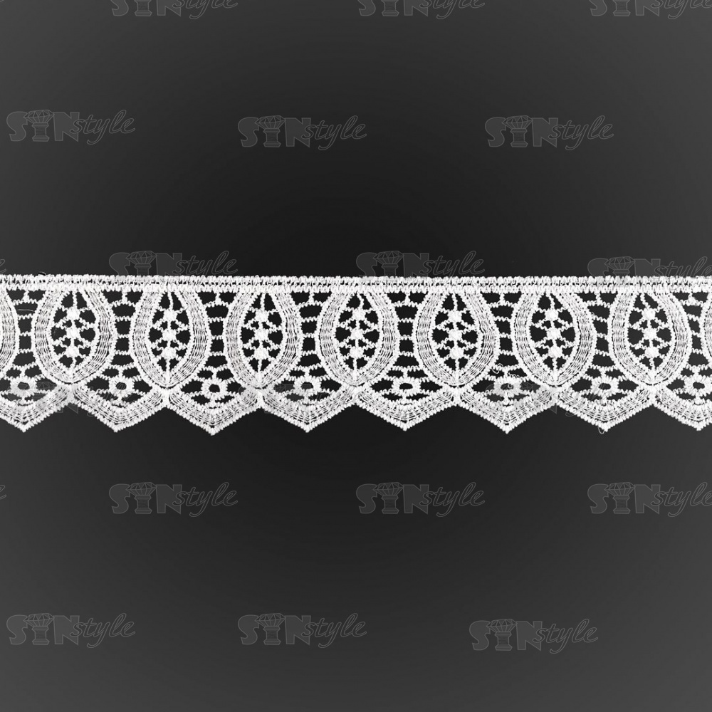 Кружево вязаное ажурное, ширина 60 мм, цвет белый, намотка 15 ярдов