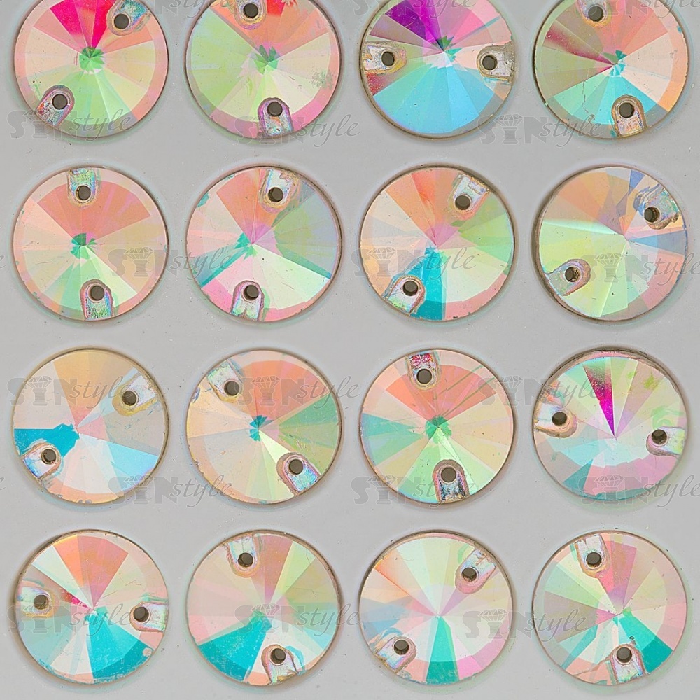 Стразы пришивные стеклянные, форма круг, цвет радужный (голография), диаметр 12 мм