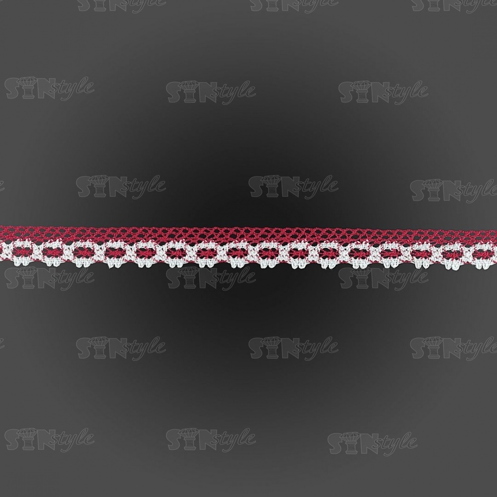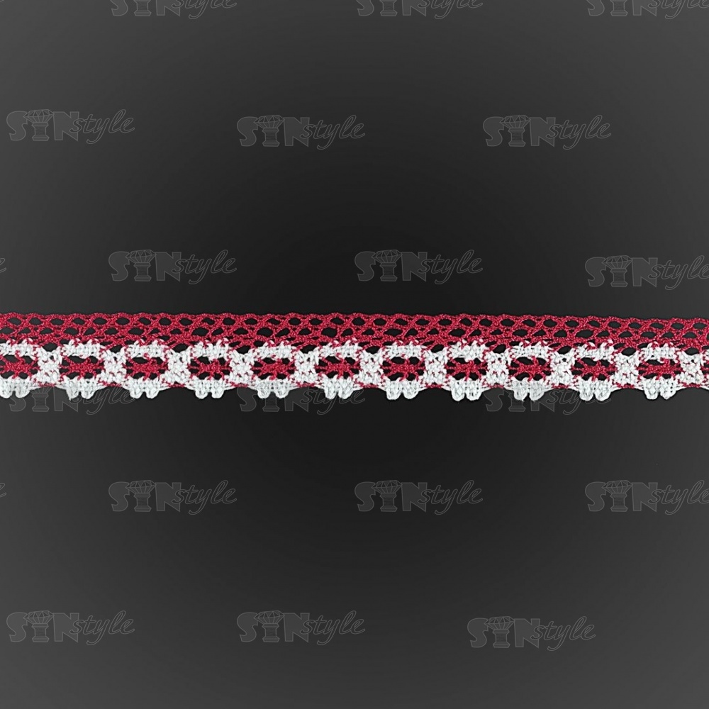 Кружево вязаное плетеное, ширина 20 мм, цвет малиновый+белый, намотка 15 ярдов