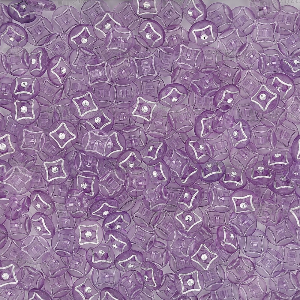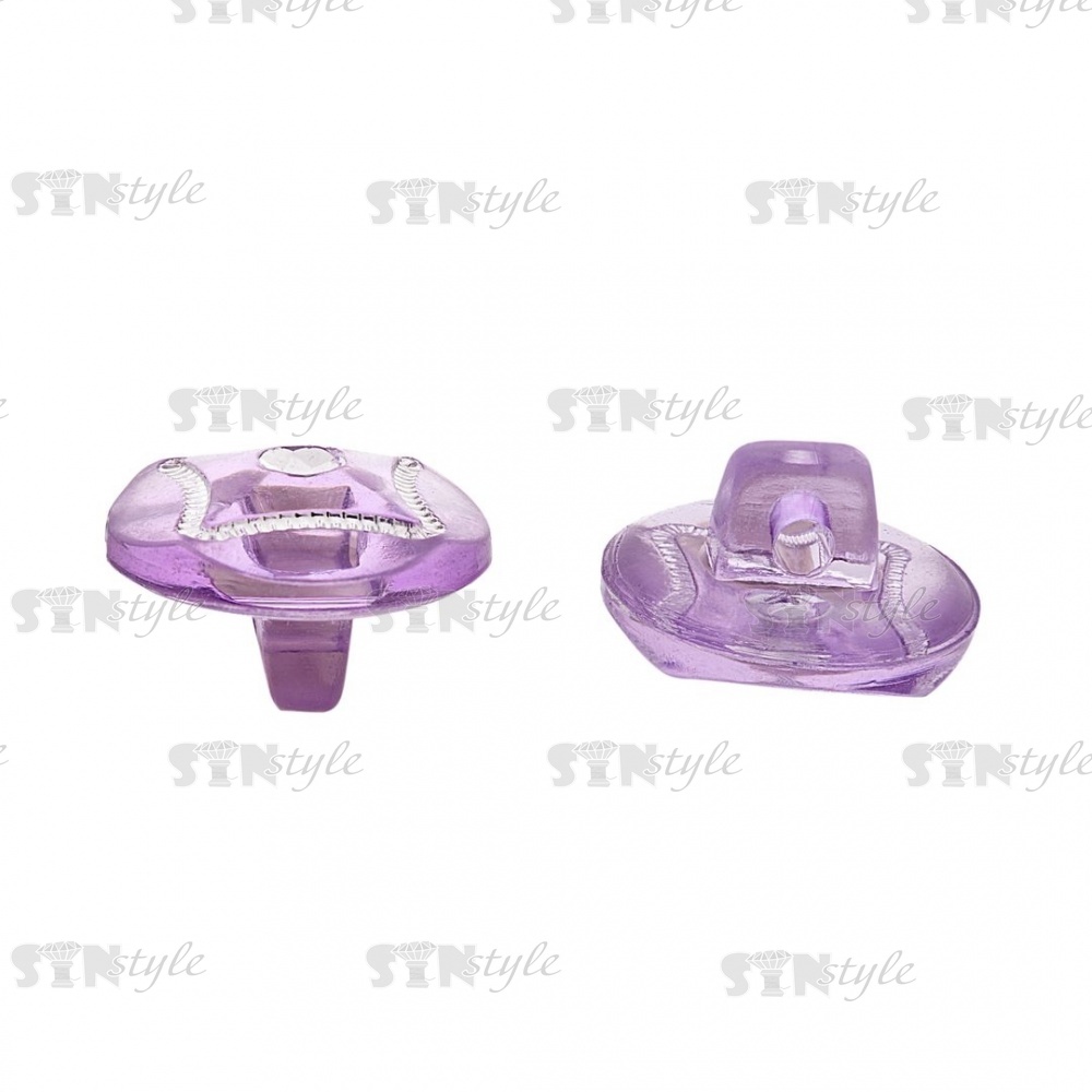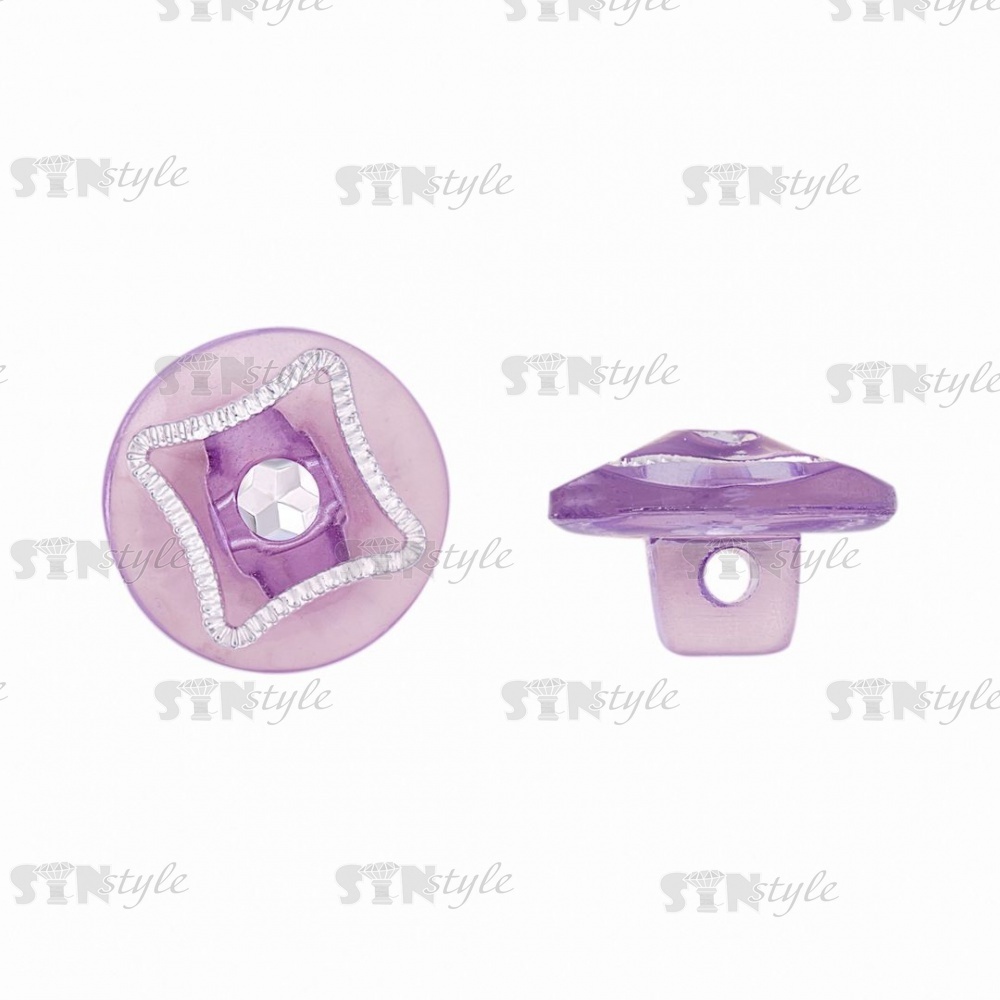 Пуговица пластиковая на ножке, круглая, фиолетовая прозрачная с белой стразой в центре, 20L