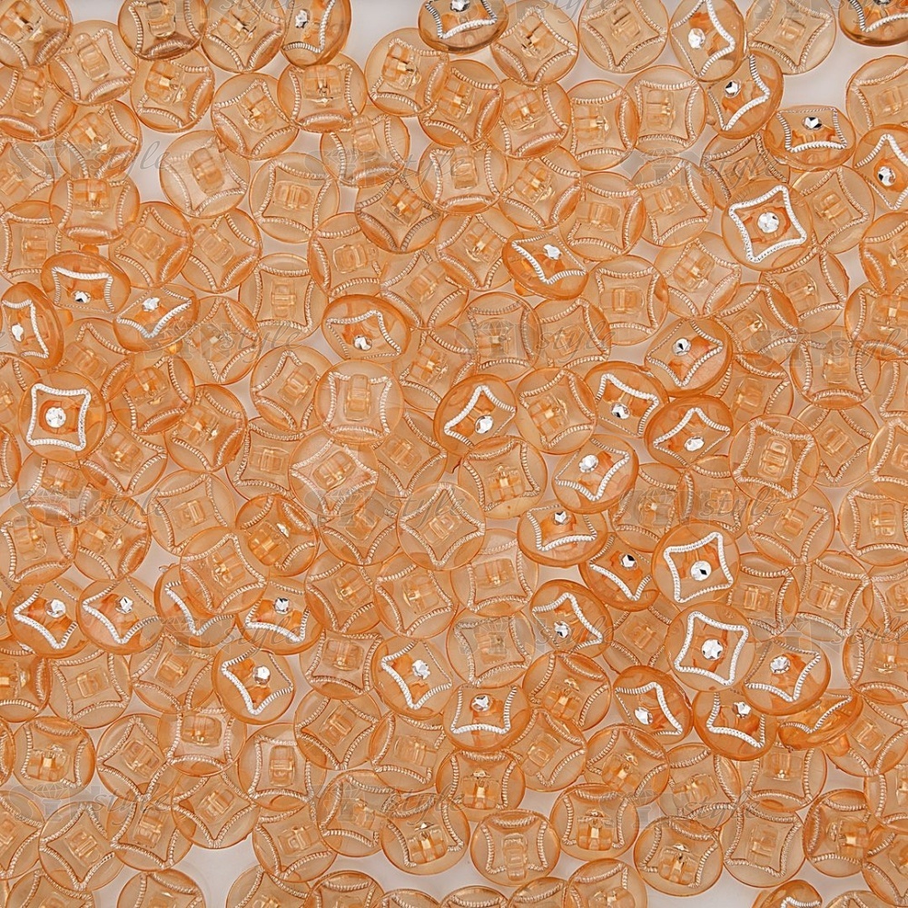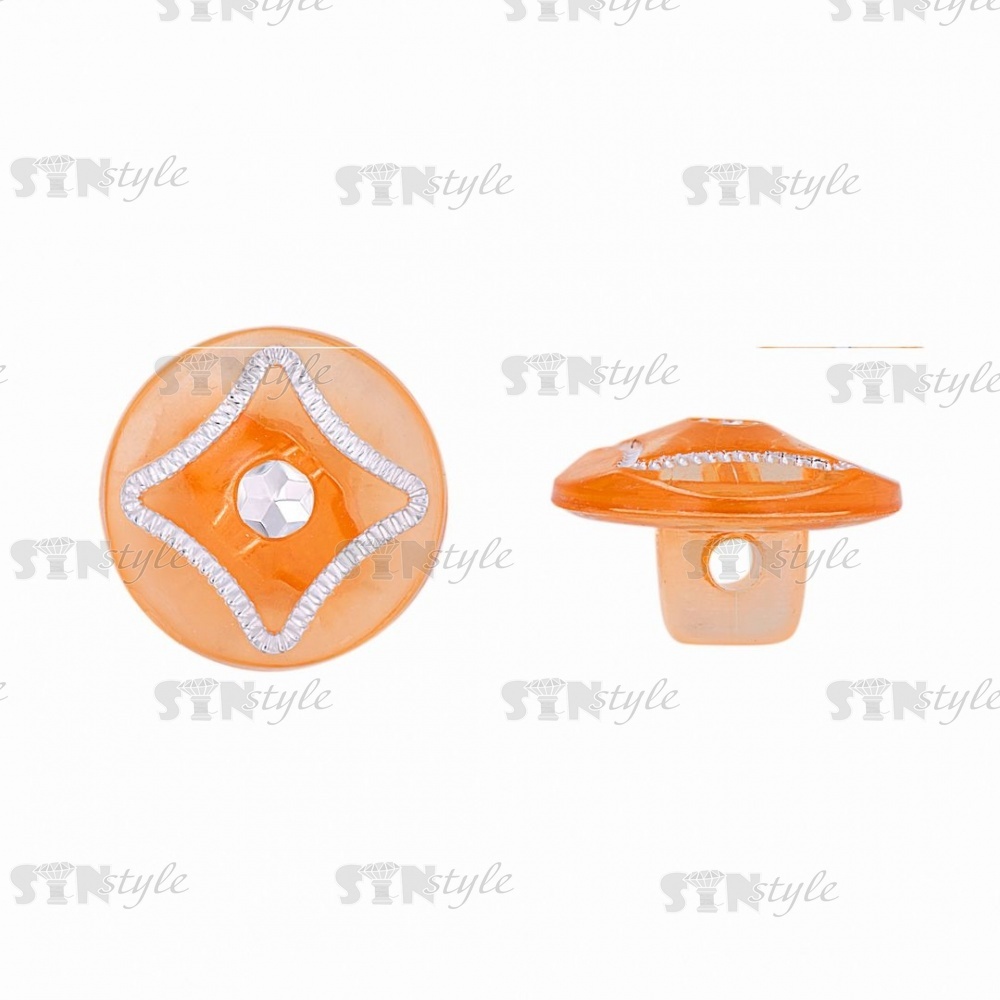 Пуговица пластиковая на ножке, круглая, оранжевая прозрачная с белой стразой в центре, 20L
